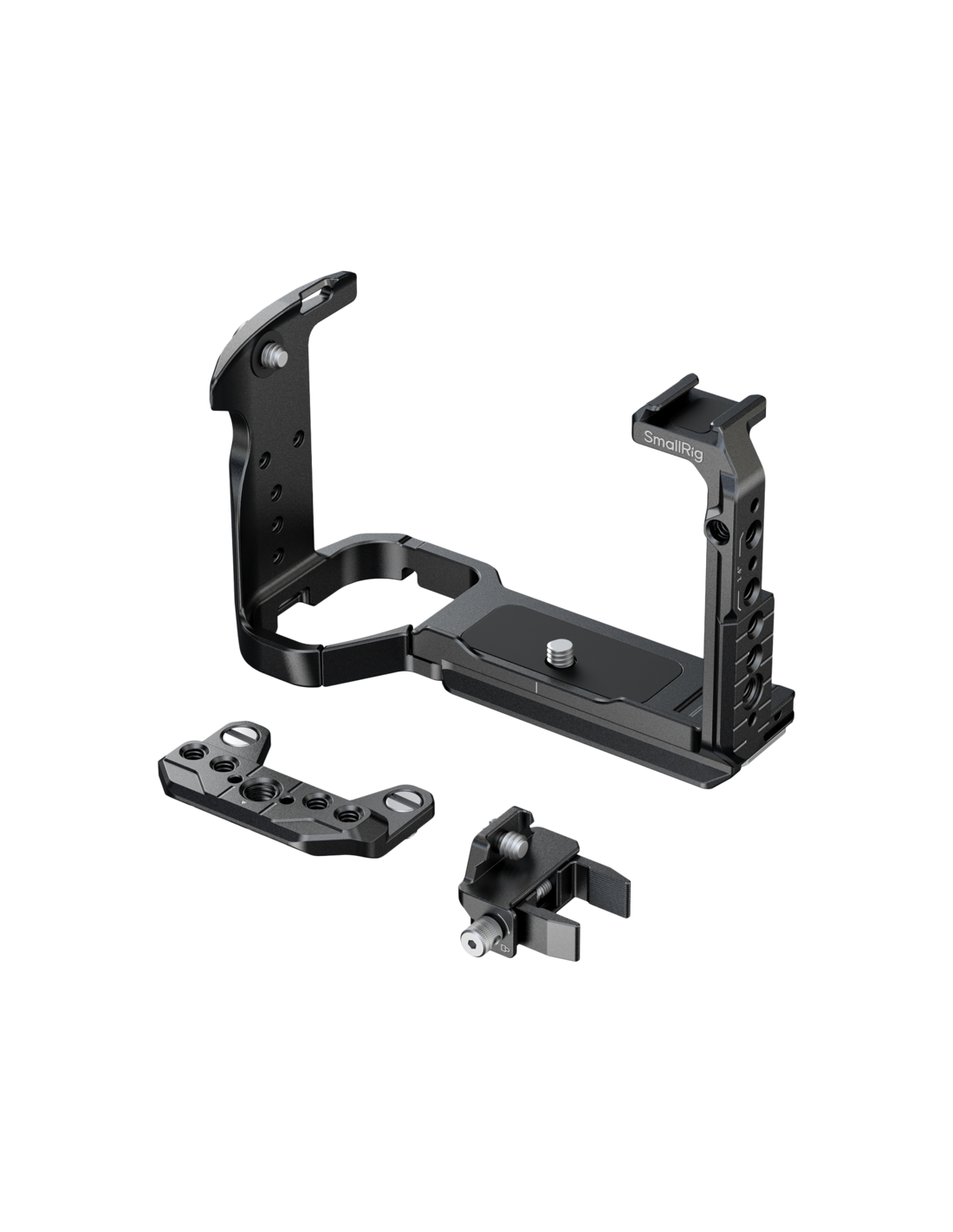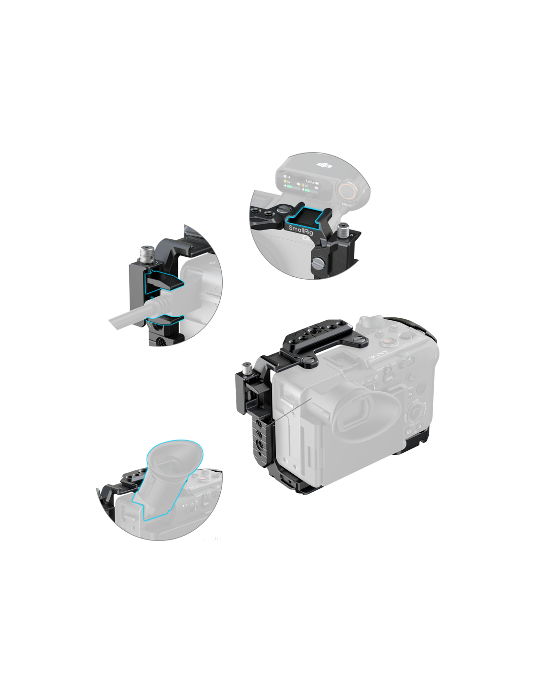 SmallRig 5587 Cage for Sony FX2Den aftagelige topplade har en NATO-skinne, der passer til Sonys XLR-tophåndtag eller SmallRigs roterende tophåndtag (4152) uden at forstyrre EVF'en.   Buret har flere monteringspunkter, herunder 1/4"-20 gevindhuller, 3/8"-16 ARRI-lokaliseringshuller og en "HawkLock" NATO-skinne til hurtig fastgørelse af tilbehør som sidehåndtag og tophåndtag.  Et koldskofæste gør det muligt at fastgøre enheder som DJI Mic 2 eller LED-lys, mens et QD-stik i bunden giver plads til skulderremme for øget bærbarhed.  Bunden er også udstyret med en magnetisk unbrakonøgle, der gør det lettere at montere og afmontere hurtigt.Den nederste quick release-plade giver sammen med "HawkLock" H38 Arca-Swiss quick release-monteringsplade (4486) mulighed for hurtig indskydning med en automatisk låsemekanisme.  Arca-Swiss-hurtigudløserpladen muliggør også sømløse overgange mellem håndholdte, stativ- og gimbal-opsætninger (kompatibel med DJI RS 2 / RSC 2 / RS 3 / RS 3 Pro / RS 4 / RS 4 Pro-stabilisatorer).  Desuden sikrer en medfølgende HDMI-kabelklemme kablet for stabil datatransmission.  Kompatibilitet:Sony FX2Pakken indeholder:BurToppladeHDMI-kabelklemme.