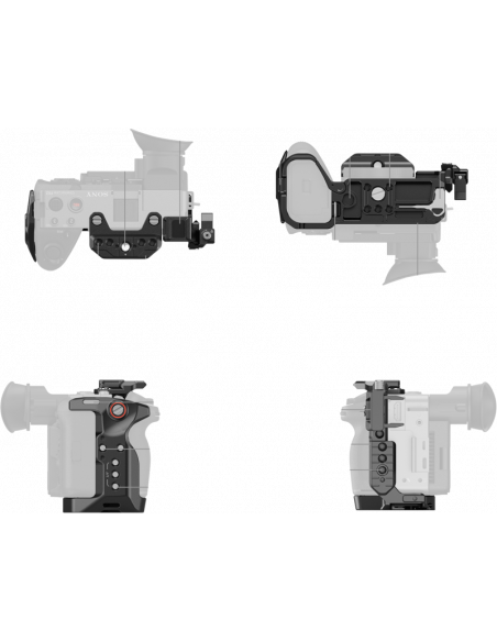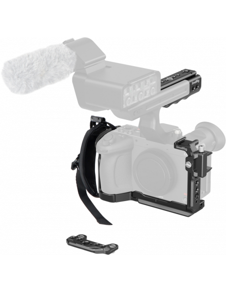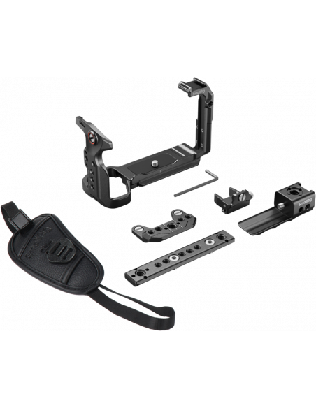 SmallRig 5588 Cage Kit til Sony FX2Med præcisionsudskæringer sikrer buret, at kameraets vipbare EVF, knapper og porte forbliver fuldt tilgængelige for problemfri betjening.  Forlængeren til XLR-håndtaget øger komforten med et udvidet grebsområde og har integrerede 1/4"-20-gevindhuller til montering af monitorbeslag og andet tilbehør.Den aftagelige topplade har en NATO-skinne, der passer til Sonys XLR-tophåndtag eller SmallRigs roterende tophåndtag (4152) uden at forstyrre EVF'en.   Buret har flere monteringspunkter, herunder 1/4"-20 gevindhuller, 3/8"-16 ARRI-lokaliseringshuller og en "HawkLock" NATO-skinne til hurtig fastgørelse af tilbehør som sidehåndtag og tophåndtag.   En cold shoe mount gør det muligt at fastgøre enheder som DJI Mic 2 eller LED-lys, mens et QD-stik i bunden giver plads til skulderstropper for forbedret bærbarhed.   Basen er også udstyret med en magnetisk unbrakonøgle, der gør det nemmere at montere og afmontere hurtigt.Den nederste hurtigudløserplade kombineret med "HawkLock" H38 Arca-Swiss hurtigudløserplade (4486) giver mulighed for hurtig fastgørelse med en automatisk låsemekanisme.  Det muliggør også sømløse overgange mellem håndholdte, stativ- og kardanopsætninger (kompatibel med DJI RS 2 / RSC 2 / RS 3 / RS 3 Pro / RS 4 / RS 4 Pro-stabilisatorer). Desuden sikrer en medfølgende HDMI-kabelklemme kablet for stabil dataoverførsel.  Kompatibilitet:Sony FX2Pakken indeholder:BurToppladeXLR Handle Extension RigNATO-skinne til XLR-håndtagHåndledsremHDMI-kabelklemmeAllen-nøgle