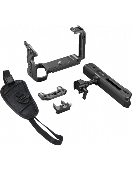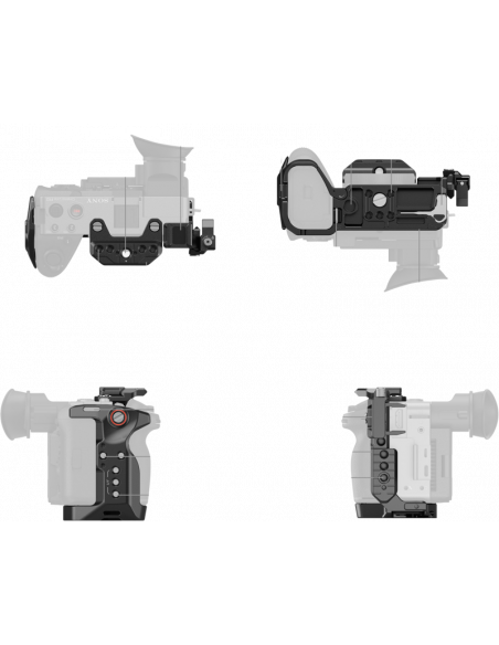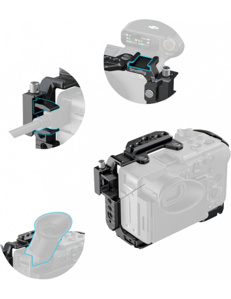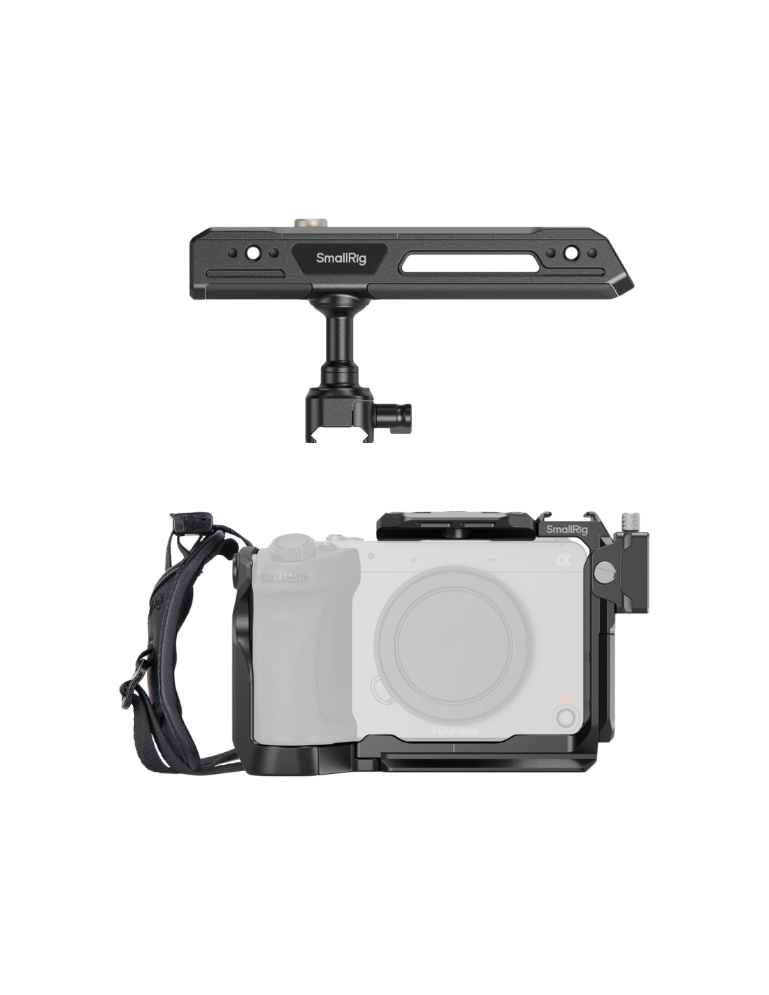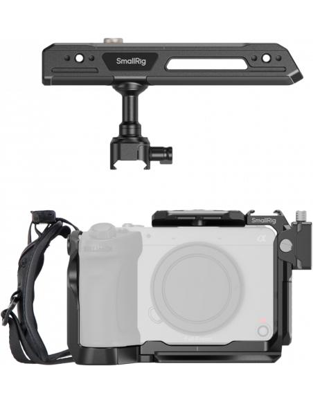 SmallRig 5589 Cage Kit til Sony FX2Buret har præcisionsudskæringer og sikrer, at kameraets vipbare EVF, knapper og porte forbliver fuldt tilgængelige for problemfri betjening. SmallRigs roterende tophåndtag (4152) har 360° rotation med et enkelt tryk, så håndtaget hurtigt kan flyttes, hvilket sikrer uhindret adgang til søgeren under håndholdt optagelse.Den aftagelige topplade har en NATO-skinne, der passer til Sonys XLR-tophåndtag eller SmallRigs roterende tophåndtag (4152) uden at genere EVF'en.   Buret har flere monteringspunkter, herunder 1/4"-20 gevindhuller, 3/8"-16 ARRI-lokaliseringshuller og en "HawkLock" NATO-skinne til hurtig fastgørelse af tilbehør som sidehåndtag og tophåndtag. En cold shoe mount gør det muligt at fastgøre enheder som DJI Mic 2 eller LED-lys, mens et QD-stik i bunden giver plads til skulderremme for øget bærbarhed. Bunden er også udstyret med en magnetisk unbrakonøgle, der gør det nemmere at montere og afmontere hurtigt.Den nederste quick release-plade giver sammen med "HawkLock" H38 Arca-Swiss quick release-monteringsplade (4486) mulighed for hurtig indskydning med en automatisk låsemekanisme.   Det muliggør også sømløse overgange mellem håndholdte, stativ- og gimbal-opsætninger (kompatibel med DJI RS 2 / RSC 2 / RS 3 / RS 3 Pro / RS 4 / RS 4 Pro-stabilisatorer).  Desuden sikrer en medfølgende HDMI-kabelklemme kablet for stabil dataoverførsel.  Kompatibilitet:Sony FX2Pakningen indeholder:BurToppladeRoterende tophåndtag HåndledsremHDMI-kabelklemme