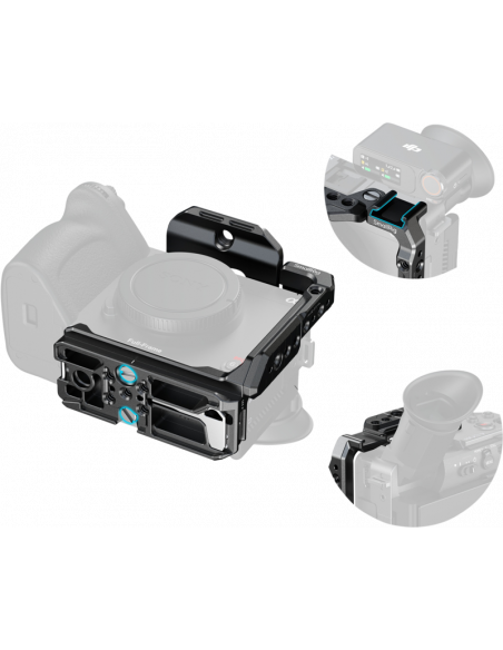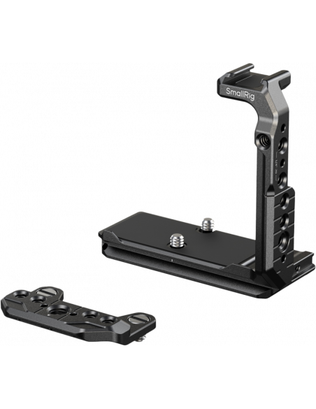 SmallRig 5591 Half Cage for Sony FX2En Arca-Swiss quick release-plade i bunden muliggør hurtige overgange mellem håndholdte, stativ- og gimbal-opsætninger (kompatibel med DJI RS 2 / RSC 2 / RS 3 / RS 3 Pro / RS 4 / RS 4 Pro-stabilisatorer).Den aftagelige topplade har en NATO-skinne, der passer til Sonys XLR-tophåndtag eller SmallRigs roterende tophåndtag (4152) uden at forstyrre EVF'en.   Med præcise udskæringer sikrer dette bur, at kameraets vipbare EVF, knapper og porte forbliver fuldt tilgængelige.Med flere monteringspunkter, herunder 1/4"-20 gevindhuller, 3/8"-16 ARRI-lokaliseringshuller og en "HawkLock" NATO-skinne.  Det giver mulighed for hurtig fastgørelse af tilbehør som sidehåndtag og tophåndtag.  En cold shoe mount gør det muligt at fastgøre enheder som DJI Mic 2 eller LED-lys, mens et QD-stik i bunden giver plads til skulderstropper for forbedret bærbarhed.Den nederste quick release-plade kombineret med "HawkLock" H38 Arca-Swiss quick release mount-plade (4486) muliggør hurtig montering med en automatisk låsemekanisme.  Basen er desuden udstyret med en magnetisk unbrakonøgle til hurtig montering og demontering.  Kompatibilitet:Sony FX2Pakken indeholder:Halvt burTopplade.