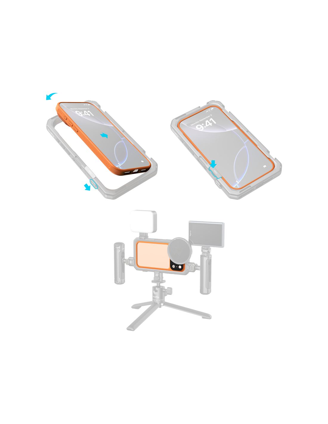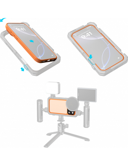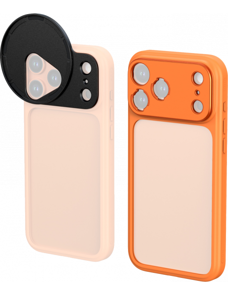 SmallRig 5792 FilMov Lightweight Photography Bumper Case til iPhone 17 Pro (Orange)Det har et bagpladesystem til objektiv med hurtig udløsning, der omfatter bagplader til T-Mount-objektiver og 67 mm filteradaptere til hurtig udskiftning af objektiver og magnetfiltre. Etuiet er lavet af blødt TPU-materiale, der giver et behageligt greb, samtidig med at det giver grundlæggende beskyttelse af telefonens hjørner og kanter.Kompatibilitet:iPhone 17 Pro Pakken indeholder:Bumper Phone CaseT-Mount Lens Backplate67mm Attachable Filter AdapterOperating Instruction.