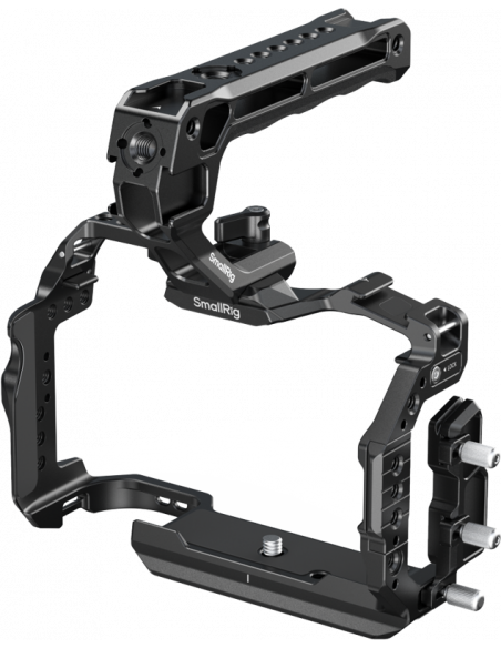 SmallRig 5955 Cage Basic Kit til Canon EOS R6 Mark III / R6 Mark IIKittet har indbygget HawkLock quick release-grænseflader til hurtig og sikker montering. Det har H21 NATO-hurtigudløserskinne, H38 Arca-Swiss-hurtigudløserplade, 1/4"-20-gevindhuller, 1/4"-20-lokaliseringshuller, 3/8"-16-gevindhuller, ARRI  3/8"-16-lokaliseringshuller, cold shoe mount, NATO-skinner, QD-grænseflader, stropåbninger og mere til fastgørelse af skærme, mikrofoner, stativer, follow focus-systemer, håndtag og andet tilbehør for at forbedre skabelsen af videoindhold i forskellige scenarier.Buret holder kameraet på plads med en enkelt 1/4"-20-skrue i bunden og to placeringsblokke på siderne, med indbyggede silikonepuder for at forhindre ridser på kameraet. Den indbyggede Arca Swiss quick release-plade muliggør problemfri montering på stativer af Arca-typen og DJI RS 2 / RSC 2 / RS 3 / RS 3 Pro / RS 4 / RS 4 Pro-stabilisatorer, hvilket letter hurtige overgange mellem stabilisator-, håndholdt- og stativopsætninger.Det ergonomiske HawkLock-håndtag med hurtigudløser og silikoneforstærkning sikrer en behagelig og stabil håndholdt optagelsesoplevelse. HDMI & USB-C-kabelklemmen fastgøres sikkert med en enkelt tommelfingerskrue, hvilket forhindrer signalafbrydelser og sikrer stabil signaloverførsel.Note:Ikke kompatibel med DJI RS 4 Mini gimbal.Når Canon R6 Mark II bruges med Cage 5955, er den ikke kompatibel med den medfølgende kabelklemme. Til denne konfiguration skal du købe kabelklemme 2981 separat.Kompatibilitet:Canon EOS R6 Mark III / R6 Mark IIPakken indeholder:BurUSB-C & HDMI Cable ClampTophåndtagBedriftsinstruktion