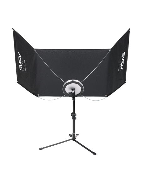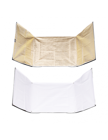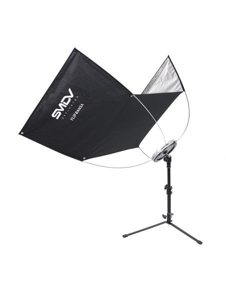 Reflects light smoothly The SMDV Flip Bansa Reflector 1480 x 625 mm gently reflects light and allows you to soften facial lines and wrinkles to create an even skin texture. Highlights Solutions for beautiful light Flip technology Three colour diffusers with press stud Solutions for beautiful light Light is gently reflected by Flip bansa and appears even more beautiful when it hits the subject. Three colour diffusers The silver diffuser brings out the natural colours of the subject. The white diffuser reflects much softer light than silver and has less reflected light. The gold diffuser is subtly reflected and creates a warm atmosphere. The diffusers are easy to attach and detach with a press stud. Flip technology The Flip Bansa Reflector features flip technology which allows you to easily fold and unfold it in just 1 second. Independently developed by SMDV, this technology is advanced and sturdy. FJ Pro ball head The FJ Pro ball head is made for the Flip Bansa reflector. It can rotate 360 degrees making it conveniently adjustable to any angle and you have freedom of movement in any direction. When installing the flip reflector, loosen and tighten the mounting screw at the top., Dimensions: 1480 x 625mm Flip technology Three colour diffusers Ball head 360º rotatable 2 year warranty , 1 x SMDV Flip Bansa Reflector 1480 x 625mm 1 x White & gold diffuser 1 x FJ Pro ball head 1 x SM 03 tripod 1 x Carrying bag