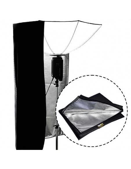 The SMDV Light Control Curtain for Flip Bounce44 is a curtain screen for the SMDV Flip Bounce44 softbox. Using this curtain, you control the light better on your subject. The screen is quick and easy to attach thanks to the Velcro fasteners. Thanks to the embossed fabric on the inside, the light appears softer.,