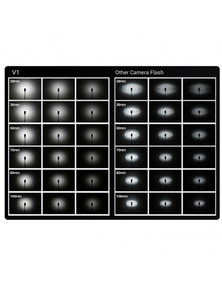Det er Panasonic 18650 battericelle der anvendes, garanterer den virkelige strømforsyning og recycling time for Godox V1 når til 1,5 sekund og tillader 480 fuld kraft.