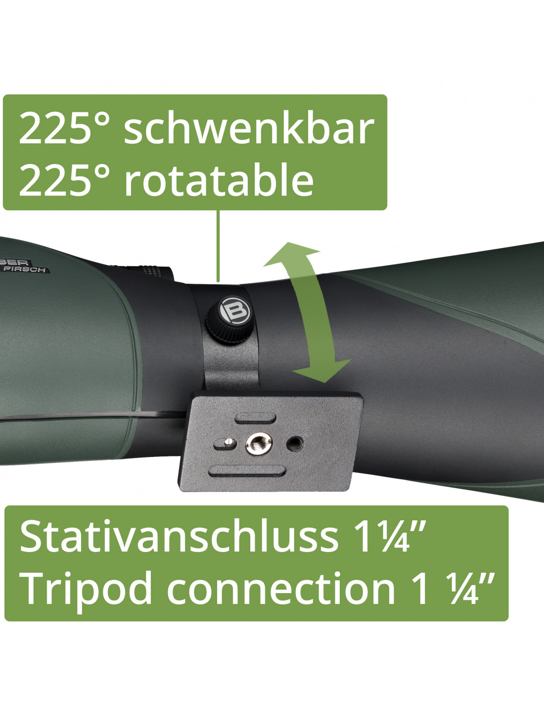 _x000D_ An important factor in optical devices is optimal focusing. Here, we at BRESSER have paid great attention to fast and easy focusing as well as very precise focusing. Thus, the focus of the Pirsch spotting scope can be adjusted quickly and down to the last cm. This is ensured by the 10:1 ratio of the focus.