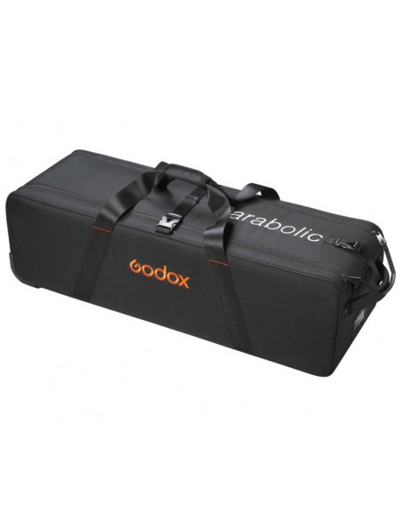 The Godox CB35 transport bag allows you to store, protect and conveniently transport your photography and lighting equipment. It was designed to transport Godox Parabolic Kits in sizes P68, P88 and P128, however, it can successfully transport many other photographic accessories. The dimensions of the bag are 94 x 30.5 x 27 cm. The Para reflector shown in the sample photo is not part of the kit.