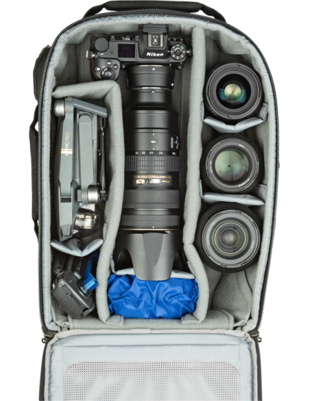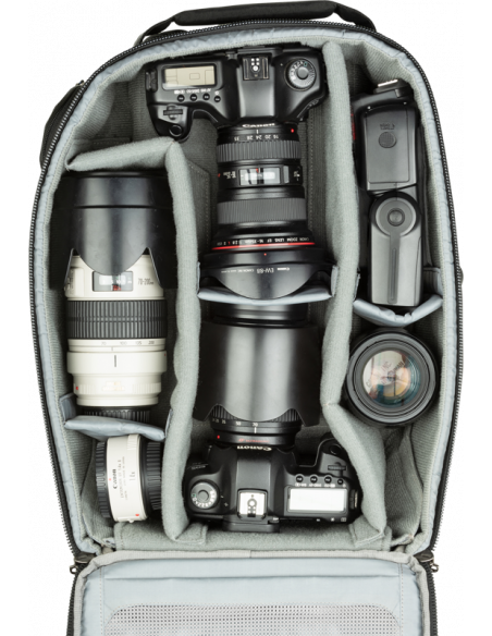 Du kan tage rullerygsækken Essentials Convertible med til steder, hvor andre rullerygsække ikke kan komme.Rul gennem lufthavnen, og sæt derefter remmene på rygsækken, når du færdes i barske terræner. Passer i størrelse til kravene til håndbagage hos de fleste flyselskaber*Essentials rummer to DSLR- eller spejlfrie kamerahuse, et påsat objektiv på 70-200 mm, flere objektiver og en 16” laptop. Og tasken holder meget længe, fordi den er fremstillet af Think Tank.VIGTIGSTE FUNKTIONER:Du kan bære rygsækken på ryggen med påsatte remme, når du færdes i et barskt terrænSpecielt designet indre så du kan pakke mest muligt kameraudstyr som håndbagage, der overholder de fleste amerikanske og internationale flyselskabers krav til håndbagageSpecielt rum til laptop på op til 16”Yderligere funktionerPasser til to DSLR- eller spejlfrie kamerahuse med påsatte objektiver, herunder et objektiv på 70-200 mm f/2.8Dyb lomme på forsiden med ruminddeling til personligt udstyrAflåselige lynlåse af typen YKK RC Fuse med medfølgende sikkerhedskabel og låsLet, praktisk selesystem med justerbar bryststrop. Følger kroppens formBeslagsystem til trebenet eller etbenet stativ medfølgerForstærket teleskophåndtag med gummierede berøringsfladerSpecialdesignede hjul på 80 mm med forseglede lejer (ABEC klasse 5), der giver lydsvag kørselSolide håndtag på tre siderLomme til vandflaskeMed de justerbare ruminddelere kan du tilpasse rygsækken til dit DSLR- eller spejlfrie udstyrHypalonforstærket bagpanel giver øget holdbarbedDet sammenfoldelige håndtag, hjulene, hjulkasserne og fødderne kan udskiftes af brugeren og forlænger rygsækkens levetidRegnslag med forseglede syninger medfølgerHvad passerRummer to DSLR-kamerahuse i standardstørrelse og 4-6 professionelle objektiverSpejlfrit system16” laptopPåsat objektiv på 70-200 mm f/2.8Objektiv på 24-70 mm f/2.8Makroobjektiv på 100 mm eller 105 mm f/2.8Objektiv på 50 mm f/1.4FlashEksempel:Sony A7rIII med påsat objektiv på 70-200 mm f/2.8 (modlysblænde trukket ud), et objektiv på 16-35 mm f/4, et objektiv på 24-70 mm f/2.8 og en flashSpecifikationerIndvendige mål:31 x 42 x 11-15 cmUdvendige mål:32 x 48,3 x 21 cmLomme til laptop:25,5 x 36,5 x 2,5 cmVægt:3,3 kgMaterialerUdvendig:Holdbar, vandafvisende belægning (DWR)Polyuretanbelægning600D polyLynlåse af typen YKK® RC Fuse (slidstærke)Hjul på 80 mm med forseglede lejerGummieret laminatforstærkningNylonnetBundne nylontråde i tre lagIndvendig:210D sølvfarvet nylonVelexforing og ruminddelere med polyuretanbagside2 regnslag af nylontaft 210T med forseglede syninger og polyuretanbelægningSkum med lukkede celler og ruminddelere forstærket med PE-pladerLommer i gennemsigtigt netBundne nylontråde i tre lag
