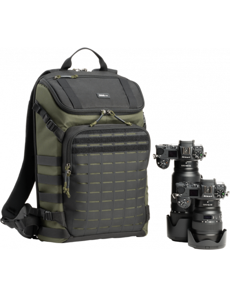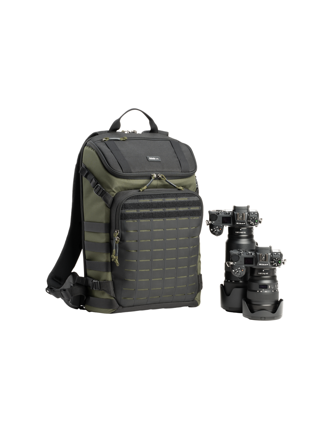 Gør dig klar til din næste fotomission med DarkLight-rygsækken, en avanceret fotorygsæk, der er udviklet til brug i byen og i felten.Denne rygsæk er bygget med et laserskåret MOLLE-panel og taktiske båndskinner, så du kan konfigurere din udrustning med præcision.Fastgør Think Tank modulære poser problemfrit for at udvide din bæreevne og sikreat du er klar til enhver fotografisk operation.NØGLEFUNKTIONER:Laserskåret MOLLE-panel på frontpanelet giver fastgørelsespunkter til kapacitetsudvidelse og fleksibilitetTaktiske båndskinner på siden gør det muligt at fastgøre modulære Think Tank-poserAdgang til kameraudstyr fra bagpanelet uden at tage tasken af, så du kan arbejde ud af tasken uden at få din sele i klemme! Tilføjer sikkerhed, når du rejser, da dit kameraudstyr er beskyttet bag din rygTopåbning giver nem adgang til kameraudstyrPlys, luftnet-dækket selesystem sikrer optimal komfort og fugtkontrolDen øverste lynlåslomme på låget er perfekt til pung, telefon og andre småtingTablet Carry: 14L: Frontlommen passer til en 8" tablet / 20L: Frontlommen passer til en 10" tablet og en 16" Macbook Pro i bagpaneletLynlåslomme i frontlommen til nøgler og andre småtingHøjre sidelomme med web cinch passer til en vandflaske eller et stativ ved hjælp af øvre og nedre kompressionsremme med SR-spænder for ekstra sikkerhedAirmesh-beklædt lændestøtte og bagpanel giver komfort hele dagenGennemføring af bagagehåndtag på bagpaneletYKK RC-lynlåse af højeste kvalitet med ergonomiske lynlåse, der er nemme at gribe med handsker eller frosne fingreJusterbare skillevægge rummer store teleobjektiver, traditionelt fotoudstyr ellerpersonlige genstandeHåndtag på toppenKrog- og løkkestrimler på frontpanelet til brugerdefinerede moralplasterAftageligt taljebælte: 14L er 1,5" webbing / 20L er polstretAlle materialer er behandlet med en PFC-fri DWR-0-belægning for maksimal vandmodstand med den laveste miljøpåvirkningRegnslag medfølger til kraftige regnskylOpfylder de fleste internationale og amerikanske krav til håndbagage og passer under de fleste flysæder.flysæder * Tjek med dit flyselskab for aktuelle krav til håndbagage***Hvad kan der være i en DarkLight 20L?Rummer to kamerahuse med påsatte objektiver og 2-3 objektiver, eller et kamerahus med påsatte objektiver plus 3-5 objektiverMaksimal objektivstørrelse: 300 mm f/2,8 eller 150-600 mm f/5-6,3 monteret på en krop**Eksempel: ** Sony A1-krop med greb og 100-400 mm f/4,5-5,6 monteret, 24-70 mm f/2,8, 16-35 mm f/2,8, EDC Tech Pouch 10, blitzEksempel: FujiFilm GFX 100 med 32-64mm f/4 monteret, 110mm f/4, 65mm f/1.4, DJI Mavic Pro og controller, Flash**Eksempel: ** Nikon Z8 monteret på 70-200 mm f/2,8, 24-70 mm f/2,8, 14-24 mm f/2,8, 85 mm f/1,8, 50 mm f/1,2, 105 mm f/2,8 Macro, 85 mm f/1,8, FlashSPECIFIKATIONER DarkLight 20LUdvendige mål: 53 x 30,5 x 21,6 cmIndvendige mål: 47 x 27,9 x 12,7 cmTotal volumen: 20 literVægt: 1,54 kg (inklusive skillevægssæt, regnslag, aftageligt taljebælte)**MATERIALER: **Udvendigt:Poly 600D PU-materialerNY 1680 BallistikHypalon TPUPoly 200D PU-foring480 g Airmesh200g Poly NylexYKK RC lynlåse3-lags bundet nylontrådPFC-fri DWR-belægning (Durable Water-Repellant)