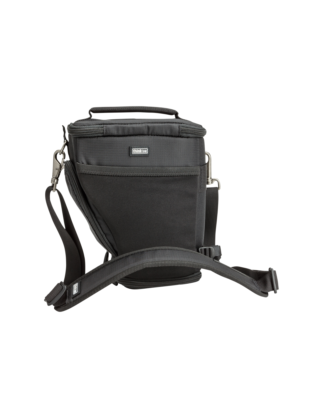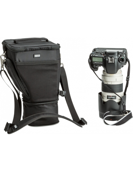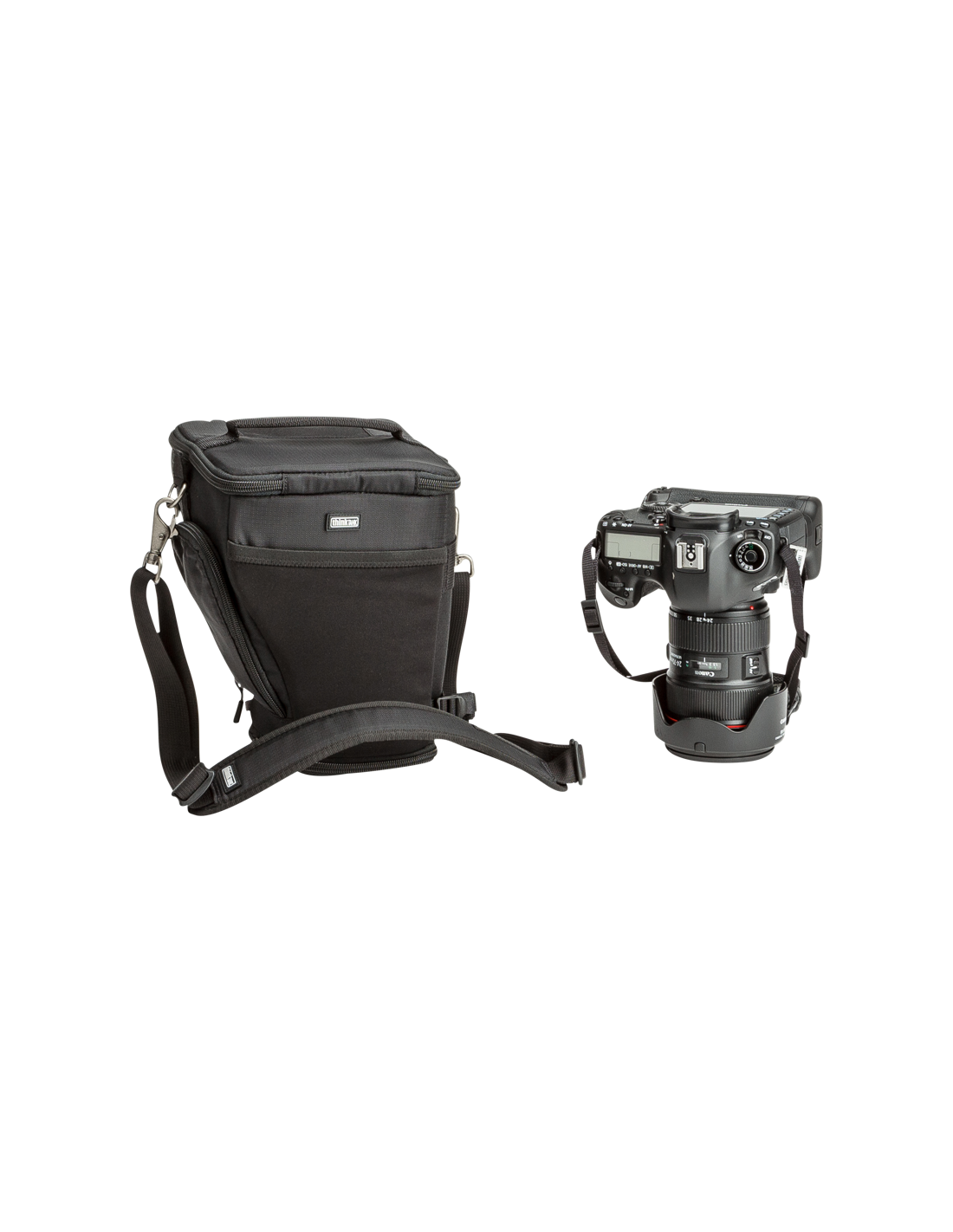 Unik taske til et DSLR-kamera med greb og et objektiv på 24-70 mm f/2.8 med modlysblænde i optagelsesstillingVIGTIGSTE FUNKTIONER:Funktionen “Pop Down” øger højden af tasken til en modlysblænde eller et teleobjektivSkuldertasken kan fastgøres til alle bælter og tasker med Modular Rails fra Think TankFastgørelsesskinne på siden til fastgørelse af lille Modular- eller Skin-komponent til taskenYderligere funktionerModlysblænden kan blive siddende i tilbageslået stilling eller optagelsesstillingStræklomme på forsiden til objektivdæksler, bagdæksler og andre genstandeAftagelig skærmbeskytter beskytter LCD-skærmen mod skulderremmeneKompatibel med selen til Digital HolsterIndvendig lomme til SD-kort eller objektivrensekludBær tasken i håndtaget på toppen eller den medfølgende skulderremHolder til visitkort på toppen af klappenRegnslag med forseglede syninger medfølgerHvad passerDSLR med grebObjektiv på 24-70 mm f/2.8SpecifikationerIndvendige mål:18,4 x 20,3-29,2 x 18,4 cmUdvendige mål:20,3 x 24,1-31,8 x 20,3 cmVægt:0,5 kg med alt tilbehørMaterialerUdvendig:Holdbar, vandafvisende belægning (DWR)Polyuretanbelægning600D polyester420D nylon med høj densitetLynlåse af typen YKK® RC Fuse (slidstærke)Lomme i UltraStretch på forsideBundne nylontråde i tre lagIndvendig:210D sølvfarvet nylonNylonplast med høj densitetVelexforing med polyuretanbagside2 regnslag af nylontaft 210T med forseglede syninger og polyuretanbelægningSkum med lukket celle og høj densitetBundne nylontråde i tre lagI kassenSkulderremSkærmbeskytter til LCD-skærmRuminddeler i skum med lukket celleRegnslag med forseglede syninger
