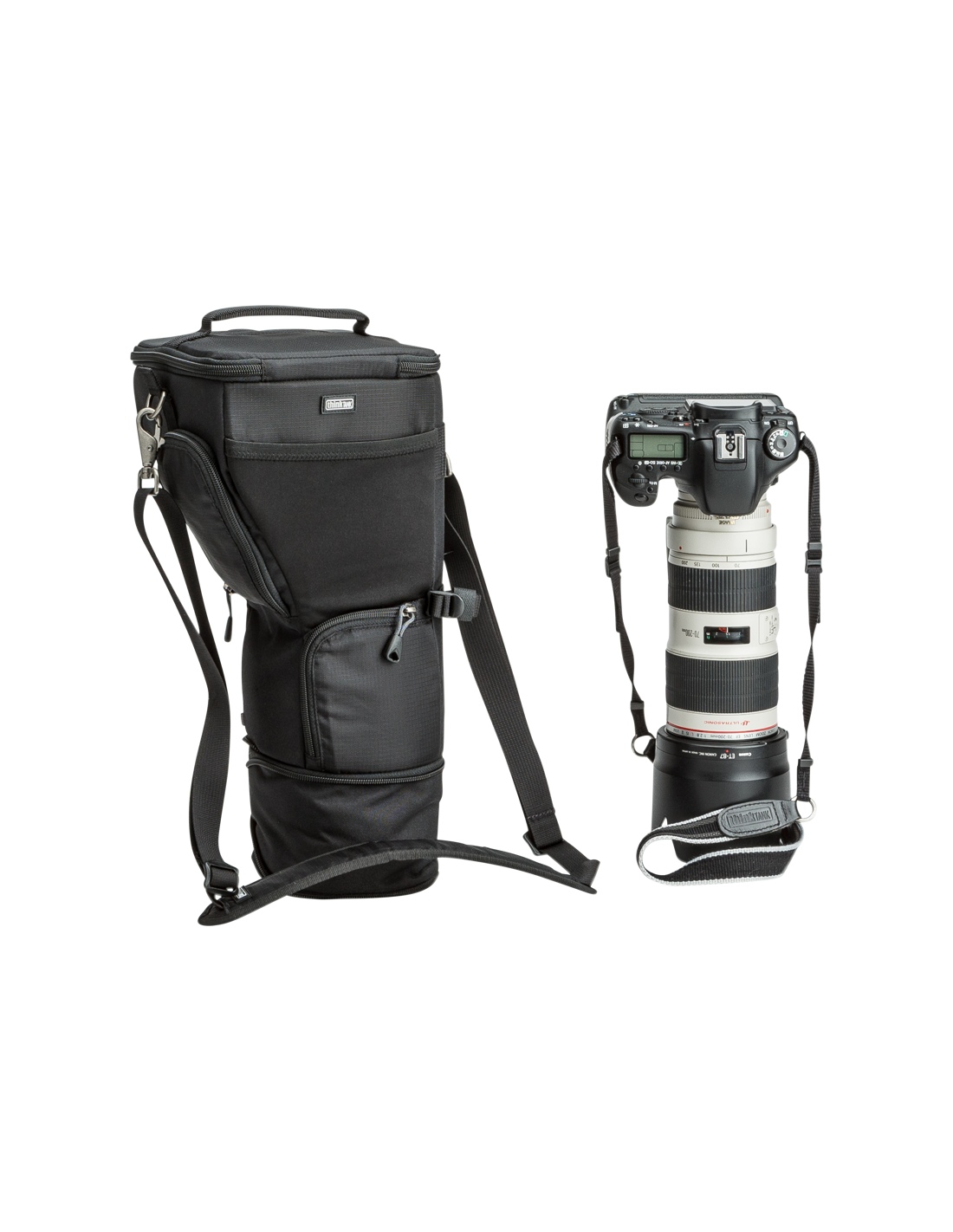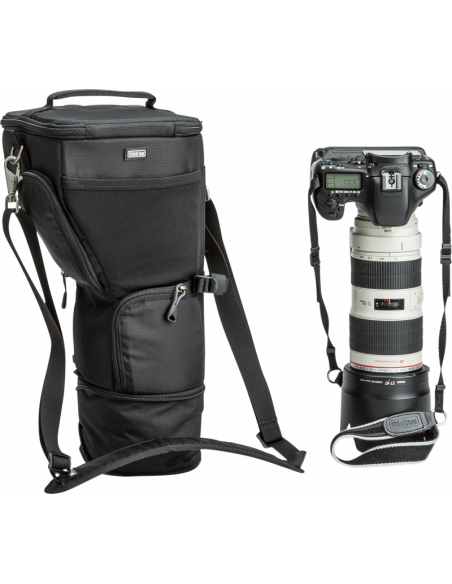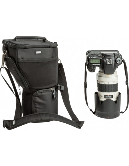 Unik taske til et DSLR-kamera med greb og et objektiv på 70-200 mm f/2.8 med modlysblænde i optagelsesstillingVIGTIGSTE FUNKTIONER:Funktionen “Pop Down” øger højden af tasken til en modlysblænde eller et teleobjektivSkuldertasken kan fastgøres til alle bælter og tasker med Modular Rails fra Think TankFastgørelsesskinne på siden til fastgørelse af lille Modular- eller Skin-komponent til taskenYderligere funktionerModlysblænden kan være i tilbageslået stilling eller optagelsesstillingStræklomme på forsiden til objektivdæksler, bagdæksler og andre genstandeAftagelig skærmbeskytter beskytter LCD-skærmen mod skulderremmeneKompatibel med Backpack Connection KitKompatibel med selen til Digital HolsterIndvendig lomme til SD-kort eller objektivrensekludBær tasken i håndtaget på toppen eller den medfølgende skulderremHolder til visitkort på toppen af klappenRegnslag med forseglede syninger medfølgerHvad passerDSLR med greb og påsat objektiv på 70-200 mm f/2.8DSLR med greb og påsat Tamron-objektiv på 150-600 mm f/5.6, modlysblænde slået tilbage, taske trykket nedSpecifikationerIndvendige mål:18,4 x 28,6-36,2 x 18,4 cmUdvendige mål:20,3 x 33-44,6 x 20,3 cmVægt:0,6 kg med alt tilbehørMaterialerUdvendig:Holdbar, vandafvisende belægning (DWR)Polyuretanbelægning600D polyester420D nylon med høj densitetLynlåse af typen YKK® RC Fuse (slidstærke)Lomme i UltraStretch på forsideBundne nylontråde i tre lagIndvendig:210D sølvfarvet nylonNylonplast med høj densitetVelexforing med polyuretanbagside2 regnslag af nylontaft 210T med forseglede syninger og polyuretanbelægningSkum med lukket celle og høj densitetBundne nylontråde i tre lagI kassenSkulderremSkærmbeskytter til LCD-skærmRuminddeler i skum med lukket celleRegnslag med forseglede syninger