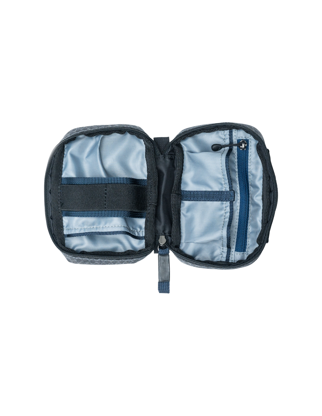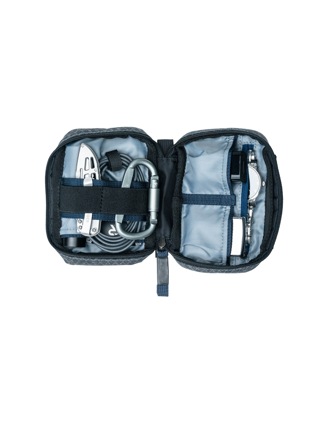 Er du træt af at rode rundt i din rygsæk for at lede efter donglen til din computer for blot at opdage, at du har glemt den derhjemme? Hold alt dit techtilbehør samlet i en ruminddelt taske, så alt er lige ved hånden, når du har brug for det. Som det gamle ordsprog siger: “Orden er det halve arbejde.”VIGTIGSTE FUNKTIONER:Designet som en åben bog giver fuld adgang og synlighedFire lommer og tre netholdere giver den ultimative ruminddelingBærehåndtaget fungerer også som bøjleUigennemsigtigt design, der holder tingene skjultIndvendig lomme med lynlåsTo holdere med elastisk båndEtuilommer med folder giver mere pladsUdvendige nettrækringe til lynlås med positivt grebHVAD RUMMER DEN:HukommelseskortLommeknivPenneKabler og donglesSPECIFIKATIONER:Udvendige mål: 13,3 x 8,9 x 3,8 cmRumindhold: 0,5 lVægt: 54 gMATERIALER:Dobbelt nylon/polyester 210/320 med diamantmønster og to farvetonerPolyester 200DKlart lag af 0,4 PFT (kun størrelse 20)YKK® RC-lynlåseNylonnetElastisk båndBundne nylontråde i tre lagHoldbar, vandafvisende belægning (DWR)
