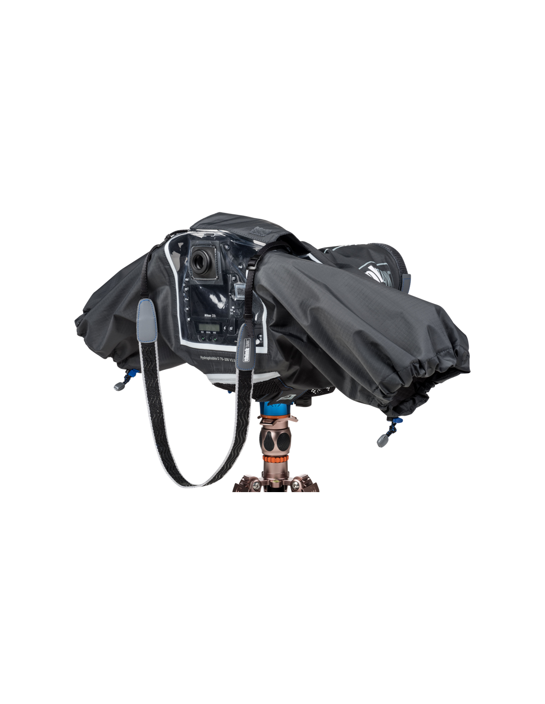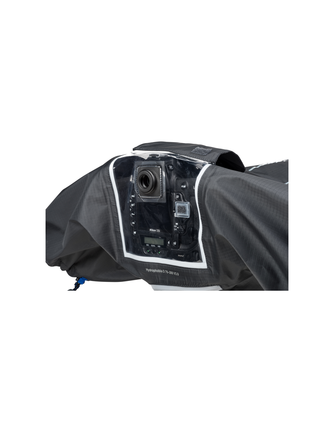 Designet specielt til DSLR-kameraer med et objektiv på 70-200 mm f/2.8.Hydrophobia-regnslaget er af højeste kvalitet og er regnslaget på markedet med den bedste beskyttelse. Regnslaget er lavet af et holdbart materiale i 3 lag med forseglede syninger og beskytter dit udstyr ekstremt godt mod regn og støv. Der skal bruges et separat okularVIGTIGSTE FUNKTIONER:Materiale i 3 lag med enestående holdbarhedForseglede syninger med maksimal beskyttelse mod regn og støvMed et okular får du fuld adgang til søgeren, og samtidig beskytter du kameraet (et okular kræves til korrekt brug – sælges særskilt)Yderligere funktionerVindue i overstørrelse til visning af LCD-skærm og kontrolknapperDirekte adgang til kameraet via to ærmer, der kan justeres, og til alle kameraets funktionerMed den indbyggede vandtætte skulderrem (med undtagelse af 300-600) kan du bære kameraet på skulderen med regnslaget påsat. Remmen kan om ønsket udskiftes med din favoritrem.Kan monteres på et trebenet eller etbenet stativOkularklappen foldes til en skærm eller beskytter søgeren mod regn og støv, når okularet ikke brugesDWR-belægning giver ekstra beskyttelseLomme til okularet i bunden af regnslaget (okular sælges særskilt)Vandtæt dæksel til det forreste element medfølger for ekstra beskyttelseDen skridsikre, justerbare rem fastgøres direkte til modlysblændenKameraremme kan sikres inden i regnslagetBærepose til transport og opbevaring medfølgerHvad passerEt DSLR-kamerahus med påsat objektiv på 70-200 mm f/2.8 eller lignende størrelse og med modlysblænde i optagelsesstilling*Objektiv på 24-70 mm f/2.8Objektiv på 70-200 mm f/2.8Objektiv på 80-400 mm f/5-6.3Objektiv på 100-400 mm f/5-6.3Kompatibel med ALLE DSLR-kamerahuse fra Nikon og Canon samt VISSE DSLR-kamerahuse fra Sony og Olympus**Rumindholdet afhænger både af objektivets og okularets kompatibilitet. Se vores okularer, og find et kompatibelt okular til dit kamerahus.SpecifikationerMål på regnslag:46 x 10-14 cm (diameter)Vægt:300 g kun regnslagDer kræves et okular (sælges særskilt) for korrekt brugMaterialer210T polyuretanfilm med forseglede syninger og rip-stop samt 70D nylontricotSyningstape af polyuretanVejrbestandige lynlåseMetalhardware med antikbelægningGummieret laminatElastisk snor med høj densitetNylonnetPolychloroprenBundne nylontråde i tre lagI kassenBærepose til transport og opbevaring