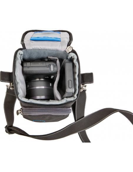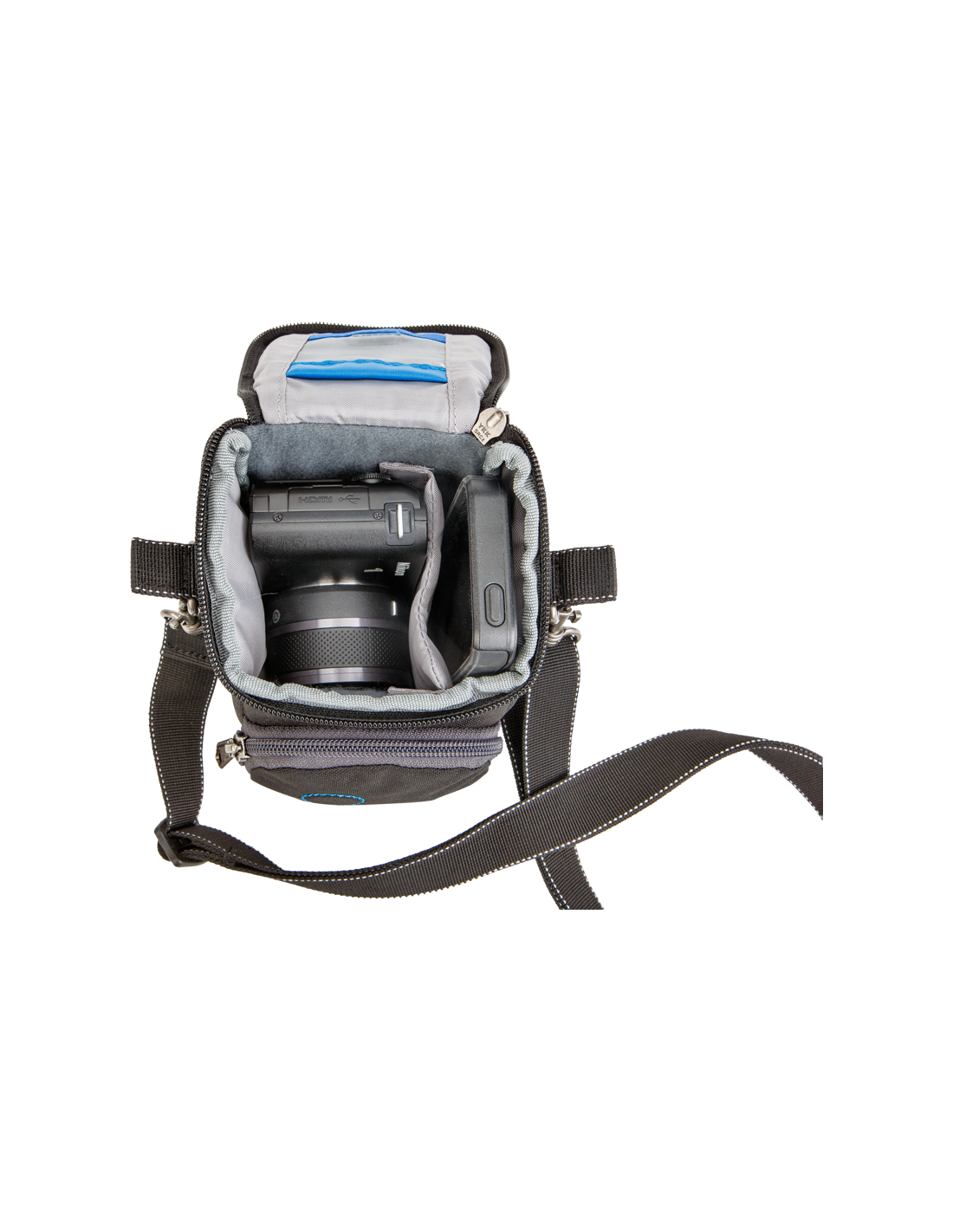 En kompakt taske specielt designet til spejlfrie systemer og kameraer med superzoomÅbning på bagside gør det muligt at bruge tasken på dit eget bælte eller på et Think Tank Photo Pro Speed-bælte eller et Thin Skin-bælteYderligere specifikationerLynlåse af typen YKK® RC og metalhardware af høj kvalitetAftagelig skulderrem konverterer nemt tasken til en bæltetaskeLomme på forside med lynlås giver nem adgang til tilbehørHåndtag på lågFlap i toppen med magnetisk lukning giver hurtig adgang til udstyrIndvendig netlomme i låg til et batteri eller mindre tilbehørPolyesterstof med høj styrke sikrer holdbarhed og beskyttelse mod vejrligetRegnslag med forseglede syninger medfølgerSeparat rum til 8" tablet (Mirrorless Mover® 25)Separat lomme til 10" tablet (Mirrorless Mover® 30)Hvad passer – Mirrorless Mover® 10En kompakt taske designet specielt til spejlfrie systemer som passer til et mellemstort kamerahus, 1-2 objektiver og tilbehørSony A7s med objektiv på 55 mm f/1.8 (modlysblænde tilbageslået)Fuji X-E2 med påsat objektiv på 18-55 mm f/2.8-4 (modlysblænde tilbageslået)*Olympus OM-D E-M5 II med påsat pandekageobjektiv på 17 mm f/2.8 + objektiv på 12-40 mm f/3.5-6.3 (uden modlysblænde)SpecifikationerIndvendige mål12,5 x 13,5 x 9,5 cm (Mirrorless Mover® 10)Udvendige mål:13,5 x 15,5 x 11,5 cm (Mirrorless Mover® 10)Plads til smartphone7 x 12,3 x 1,6 cm (Mirrorless Mover® 10)Vægt:0,3 kg, med alt udstyr (Mirrorless Mover® 10)MaterialerUdvendig:Polyuretanbelægning1680D polyester med høj styrke600D børstet polyesterLynlåse af typen YKK®Lomme i UltraStretchMetalhardware med forniklet antikbelægningBundne nylontråde i tre lagIndvendig:Ruminddelere i skum med lukket celle200D polyesterNylexforing med polyuretanbagside2 regnslag af nylontaft 210T med forseglede syninger og polyuretanbelægningBundne nylontråde i tre lagI kassenRuminddeler i skum med lukket celleSkulderremRegnslag med forseglede syninger
