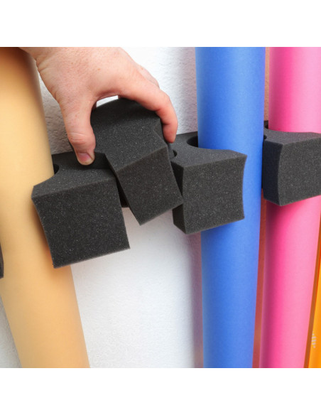 Flexible yet durable polyurethane holder organizes and protects rolled backdrops