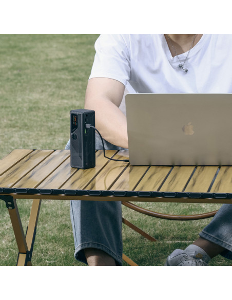 Camera power bank The Ulanzi 100W Camera Powerbank 19200mA is a powerful and versatile powerbank specially designed for photographers and videographers who need reliable power for their equipment on the go. Highlight Wide compatibility Universal 1/4â and 3/8â mounting holes 100W (Max) fast charging Lightweight and portable Designed for one handed operation, easy to carry, perfect for photography adventures on the go. Long lasting Power With a 3.7V/19200mAh battery capacity, this powerbank keeps your devices running during outdoor shoots. Fast charging With a powerful 21700 battery, 5000mAh each, this powerbank charges your devices in no time. Wide compatibility With charging while discharging, supports simultaneous charging for multiple devices. Digital display Display shows parameters such as exact percentage of remaining current, transfer power and more. Universal mounting holes Universal 1/4â and 3/8â mounting holes for tripod, lamp stand, camera, etc., Weight: 5609 g Dimensions: 150 x 52 x 46 mm Lithium battery: 3.7V/19200mAh, 71Wh Rated output: Rated output 10600mAh (5V 3A) Type C1 (Input/Output): 5V/3A,9V/3A,12V/3A,15V/3A,20V/5A;100W(Max) Type C2 (Output): 5V/3A,9V/3A,12V/2.5A,15V/2A;30W(Max) USB A (output): 5V/4.5A (SCP),5V/3A,9V/2A,12V/1.5A;22.5W(Max) DC (Input): 5V/3A,9V/3A,12V/3A,15V/3A,20V/5A;60W(Max) DC (Output): 5V/3A,9V/3A,12V/3A,15V/3A,20V/3.25A,24V/2.7A;65W(Max) , 1 x Ulanzi 100W Camera Powerbank 19200mA 1 x Type C charging cable 1 x User guide