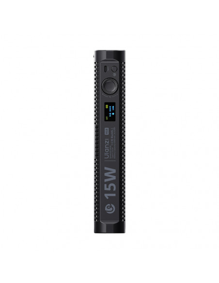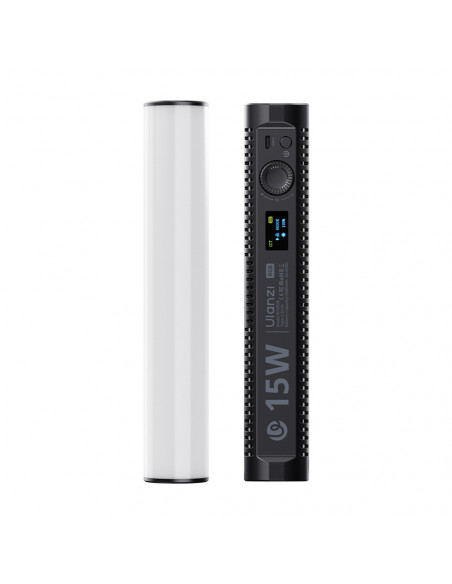 Power in your hands The Ulanzi B15RGB Tube Light is compact and lightweight, fits easily in your bag and sits comfortably in one hand, ready to provide instant creative lighting anytime, anywhere. Highlights Wide colour temperature range + RGB mode Ultra compact design with versatile mounting options Built in rechargeable battery 25% brighter with overdrive power Powered by high power, the 18W overdrive mode provides a brightness boost that illuminates every detail. 1800K 10 9000K wide CCT range Effortlessly create different mood lighting, from warm sunset to natural daylight, with a wide colour temperature range. Infinite colours, infinite possibilities 360° full colour control with rich hues and smooth transitions, allowing you to illuminate every scene in a new way. Built in battery A built in battery with long lasting power gives you the freedom to work longer without interruptions. Reliable, powerful and always ready when you are. Magnetic attachment, effortless creativity With magnetic points on both ends and dual 1/4" screw threads, you can attach it anywhere and light up any way you want., Model: B15RGB Material: ABS + PC Colour tone: 0º to 359º Brightness: 0% to 100% Colour temperature: 1800K to 9000K CRI: 92 97 Beam angle: 120º Power: Standard mode 15 W, overdrive mode 18 W Battery capacity: 2 x 18650, 3300 mAh, 7.4 V Charging port: Type C Charging time: 3 hours Dimensions: 250 x 43 x 42.2 mm Weight: 251 g Illuminance (9000K): Standard mode (100% brightness): 1850Lux@0.5m ; Overdrive mode (125% brightness): 2350Lux@0.5m