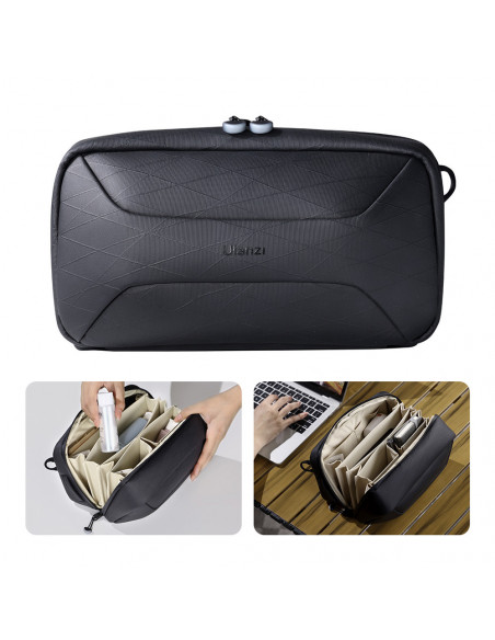 Storage bag for travel The Ulanzi BT02 Short trip Travel Series Bag is designed for photographers seeking compact, functional protection for their equipment. The bag offers waterproof protection and has a harmonica design suitable for a variety of gear. Ideal for travel. Highlights Waterproof and weighs only 375 g Multiple carrying options Harmonica device Travel with peace of mind Made of splash resistant and durable material, ready to take anywhere, whatever the weather. Improved material for shock resistant and impact resistant performance. The bag offers quick access to your gear and is especially useful for photographers who are on the move a lot, without wanting to carry heavy equipment. You can use the splash proof zip in two directions for smooth and effortless opening. The Glow in the dark zip puller helps you find your gear easily, even in the dark. Multiple carrying options Grab the bag by the handle or use the loop to add a shoulder strap for crossbody style (not included). The bag is compact, weighing only 375g, and you can also easily slip it into a backpack., Material: Splash proof and durable Weight: 375 g Zip can be used in two directions Glow in the dark zip puller