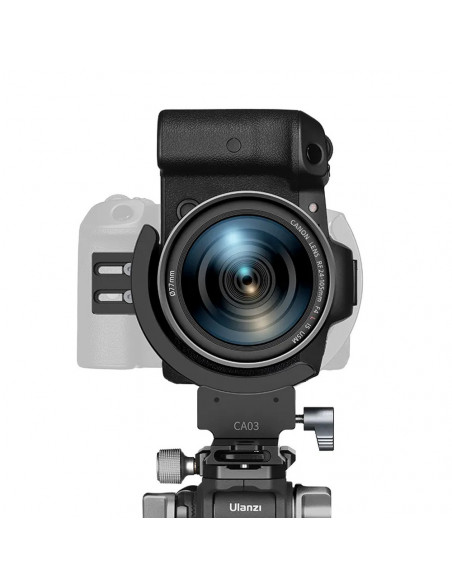 Easy and fast rotation The Ulanzi CA03 95mm Rotatable Collar Adapter Ring is compatible with most cameras and lenses on the market. With a diameter of 95mm and a rotatable design, this ring allows easy rotation of the lens, providing flexible adjustments while shooting. It is made of durable aluminium, providing a lightweight but sturdy construction, and it provides a stable base, especially when using heavier lenses. Highlights Diameter of 95mm and a rotating design Easy to install without removing the lens Adjustable base plate Rotation from 0 90° Effortless transition between vertical and horizontal mode. C bracket design Easy to install without removing the lens, compatible with most cameras and lenses on the market. Suitable for lenses with a diameter of 95 mm. Adjustable base plate The height of the base plate can be easily adjusted to the centre of the lens and is suitable for different cameras. Versatile mounting options Features 3/8â and 1/4â threaded holes and an Arca Swiss dovetail groove for easy changing between tripods, grips, stabilisers and other recording devices. Multiple anti deviation details keep the lens from shifting, keeping your shots stable at all times. , Model: CA03 Material: Aluminium alloy, Magnet, Stainless Steel Load capacity: 5kg/11.02lb Inner ring diameter:95mm/3.74inch Dimensions:133.5 à 85.0 x 120.0mm Weight:207g , 1 x 95mm Adapter Ring 1 x Built in Allen key