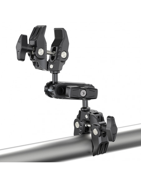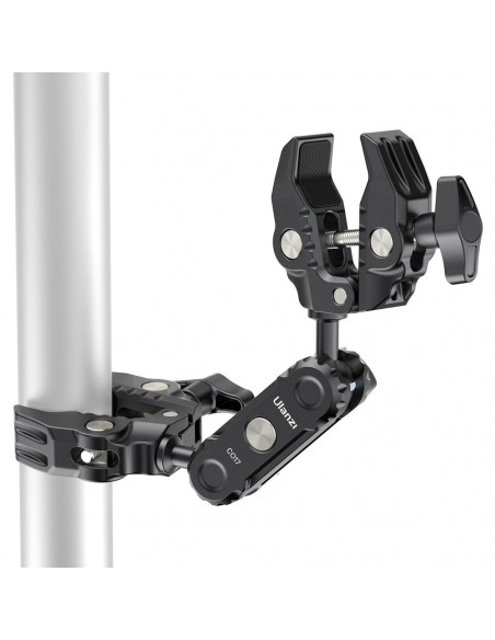 Super clamp for super flexibility The versatile Ulanzi CO17 Super Clamp With Dual Ballhead Magic Arm easily attaches to motorbikes, bikes, tripods, tables and more. Its non slip design ensures a firm grip on surfaces from 1.19 cm to 5.79 cm wide. Made of lightweight but durable aluminium alloy, it is perfect for travel and everyday use. Highlights Mounts on surfaces from 1.19 cm to 5.79 cm wide 3.5 kg carrying capacity 360° Mini ball head at both ends 1/4" 20 mounting bolts The dual ball head is flexibly adjustable 360°, for versatile shooting angles. You can interchange the ball heads to expand your options, with a 3.5 kg load capacity. , Material: Aluminium alloy, stainless steel and silicone Clamp weight: 349 g Clamp dimensions: 235 x 85 x 47 mm ARRI adapter Net weight: 40 g ARRI adapter Dimensions: 32 x 59 x 22 mm , 1 x Ulanzi CO17 Super Clamp With Dual Ballhead Magic Arm 1 x ARRI adapter