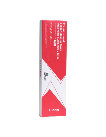 Full frame Sensor Cleaning Swab Kit The Ulanzi CO22 Full Frame Sensor Cleaning Swab Kit*5pcs contains 5 24 mm Fll frame sensor cleaning swabs specifically designed for cleaning APS C cameras. The swab head is fully covered with super fine micrometer level dust cloth. Ideal for cleaning Canon, Sony, Nikon, Fujifilm, Panasonic, Pentax and other APS C sensors. Highlights Designed for Full frame sensor Efficient cleaning Easy to use Designed for Full frame sensor Fits the sensor size perfectly. The cleaning cloth is suitable for 24 mm Full frame sensor. Efficient cleaning Covered with a superfine microfibre swab to effectively absorb dust and fingerprints. It is recommended to use each cotton swab only once to avoid secondary contamination. Easy to use Easy to grip handle makes cleaning easier. Pocketable and hassle free Supplied in individual packets for travelling., For Full frame sensor Wiper is a superfine microfibre cloth Dimensions: 155 x 42 x 14 mm Weight: 21 g