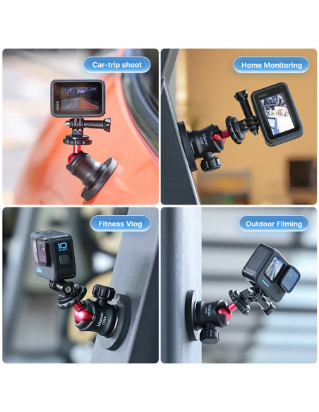 Magnetic camera mount for GoPro The Ulanzi CO29 Magnetic Camera Mount For GoPro offers a powerful magnetic force with 6 magnets and a soft silicone base for stable and scratch free attachment. This camera mount offers versatility and stability for all your shots, ideal for different devices and situations. Highlights Compatible with Action Cameras, smartphones, card cameras and fill light Powerful magnetic force Ball head with 360° adjustment Compatible with Action Cameras, smartphones, card cameras and fill light The CO29 Magnetic Camera Mount For GoPro is compatible with various devices such as action cameras, smartphones and fill in lights (up to 500g). Including a standard 1/4" screw and GoPro adapter, it is ideal for versatile shooting. Powerful magnetic force Enhanced magnetic force with 6 magnets for stable attachment and captures beautiful moments effortlessly. The soft silicone base ensures a seamless fit and makes it scratch resistant. Ball head with 360° adjustment Enjoy the freedom to adjust your shooting angle as desired with the spherical ball head., Material:ABS+Aluminum alloy+Silicone rubber Ball head dimensions: 78.2 x 70.5 mm Load capacity of ball head: 1 kg GoPro adapter size: 58.9 x 27 mm Weight: 205 g , 1 x Ulanzi CO29 Magnetic Camera Mount For GoPro