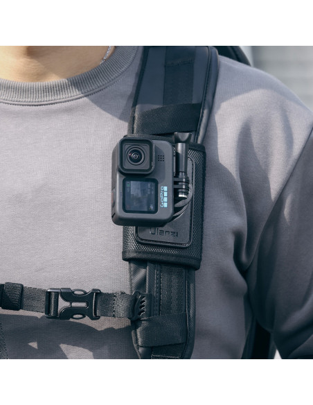 Capture immersive video footage The Ulanzi CO62 Go Quick II Backpack Clip Mount is a versatile solution for capturing action footage hands free. Compatible with action cameras and mobile phones, this mount lets you film activities such as fishing, cycling, hiking and boating from a unique POV perspective. Highlights Wrap around design With magnetic attachment, 360° rotation and horizontal and vertical shooting modes Compatible with mobile phones, GoPro, DJI and Insta360 action cameras. Wrap around design The mount is easy to attach with a wrap around design that attaches securely to your backpack strap, for a slim and lightweight solution. The large Velcro strap and non slip rubber ensure a firm grip and protect your backpack and belt from damage. Magnetic attachment This backpack clip features a magnetic attachment for easy installation and removal, allowing you to quickly switch between Go Quick series devices. You can adjust the angle with 360° rotation and shoot both horizontally and vertically to suit your needs. Wide compatibility With wide compatibility including mobile phones, DJI and Insta360 action cameras, and multiple mounting options such as a 1/4â screw hole and cold shoe mount, this mount offers endless possibilities for capturing stunning content. , Materials: ABS+PC, polyester Dimensions: 115 x 82 x 48mm Weight: 100g ± 5g Compatibility: Mobile phone, DJI and Insta360 action camera Load capacity: ⤠800g Phone clamp Width: 57 90mm , 1 x Backpack clamp mount 1 x Quick release holder 1 x Phone clamp