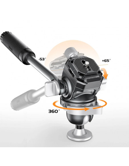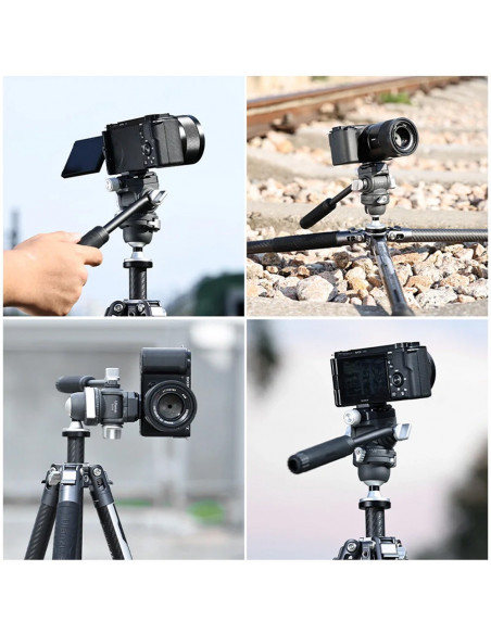 Precision in every move The Ulanzi EH09 Arca Ballhead (suitable to TT09) is a versatile ballhead designed specifically for the TT09 travel tripod. The ballhead supports an Arca Swiss quick release system, which is convenient for quick and easy mounting of camera equipment. Thanks to its 360° panoramic rotation, it offers flexibility for both horizontal and vertical shooting, which is ideal for photographers who frequently change camera angles. Highlights Specially designed for the TT09 travel tripod 360° panoramic rotation Load capacity of up to 5 kg Precision in every gliding motion Experience precision in every shot with the hydraulic ball head, which provides unmatched fluidity while moving your camera. This system makes it easy to effortlessly switch between vertical and horizontal shooting angles, perfect for any creative situation. Quick and easy levelling The ball head features a double spirit level integrated at both the base and the side, so you can always find the right balance for your shots. Thanks to the smart horizontal installation, combined with a camera cage, you can expand your photography and video techniques and take breathtaking shots from any angle. Easy rotation with the built in screwdriver The built in, detachable handle also doubles as a screwdriver, allowing you to easily adjust the setup whether you are left or right handed. It has a 3/8â to 1/4â screw adapter, making it compatible with various tripods. Weighing just 460g, this ball head is light and easy to carry, making it ideal for travelling., Material: aluminium 360° panoramic rotation Double spirit level Removable handle 3/8â to 1/4â screw adapter Weight: 460 g Dimensions: 92.2 x 72.3 x 120 mm Handle length: 195.8 mm Load capacity: 5 kg , 1 x Ulanzi EH09 Ballhead Arca (suitable to TT09) 1 x Hexagonal Flower Wrench 1 x Handle 1 x 3/8â to 1/4â screw adapter