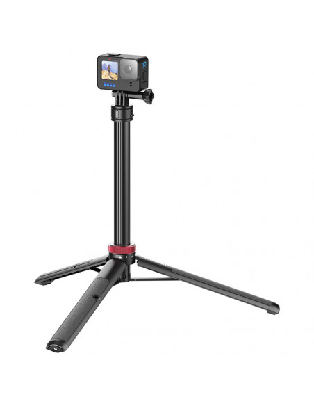 Extendable Tripod for Action Cameras The Ulanzi Go Quick II Extendable Tripod for Action Cameras is a versatile and robust extendable tripod, perfect for action cameras such as GP, DJI, Insta360 and other models. With its strong magnetic suction, you can quickly attach your camera within a second without the need for screws. Highlights Suitable for GP, DJI, insta360 and other action cameras Strong magnetic suction & quick installation Max height 140cm The tripod offers a 4 stage height extension to a maximum height of 140cm, allowing you to film from different angles and heights. The sturdy tripod legs provide stable support, and a simple handle makes it easy to switch to tripod shooting mode. For added safety, the tripod is equipped with a secondary reinforced locking pin, ensuring a more secure user experience., Model: Go QuickII Weight: 332 g Storage size: 29.3 cm Maximum height: 140 cm Material: ABS + Aluminium , 1 x Ulanzi Go Quick II Extendable Tripod for Action Cameras