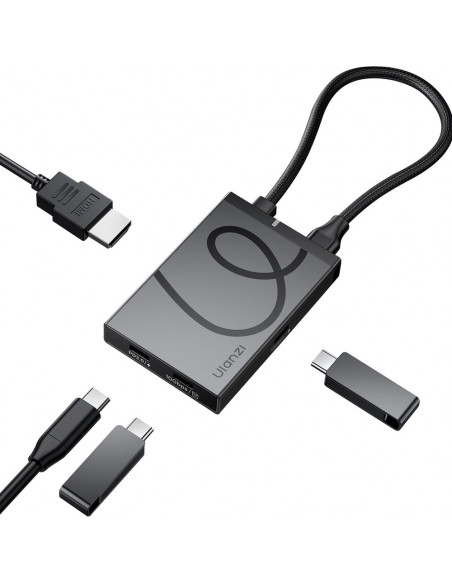 All in one Power Pro Level recording The Ulanzi H1 4 in 1 USB C Media Hub lets you connect multiple devices at once and support real time monitoring, audio recording, charging and remote recording all at the same time. Highlights All in one design Plug and play Featuring USB 3.2 ports with speeds up to 10 Gbps Keep cables organised Thoughtful port design ensures cables are well organised without blocking your view of the monitor or microphone screen. Secure your setup A 1/4â mount and cold shoe adapter make it easy to attach to camera cages, so cables won't get loose or fall out during use. Go live in HD The HDMI 2.0 port supports 4K resolution, making it perfect for live streaming. Screen sharing made easy Easily connect to TVs or monitors for seamless presentations or screen sharing during meetings. So you're always ready for business. Speed up your workflow With USB 3.2 ports with speeds of up to 10 Gbps. Plug and play No extra drivers needed, just plug and play. Compatible with Windows, macOS, iOS, Android, Linux, HarmonyOS and Chrome OS., Material:Aluminium Dimensions:70 x 48 x 12 mm Weight: â56 g Operating temperature: 10 °C~50 °C System supported:Windows/macOS / iOS / Android / Linux / HarmonyOS / Chrome OS Compatibility: Compatible with most smartphones, tablets and PCs on the market; recording to an external storage drive is only supported by smartphones with external storage functionality. *Because PD3.0 Fast provides a dynamic power supply, the charging input may not be supported for some special models., 1 x Cold shoe mounting adapter 1 x Docking Station 1 x User guide