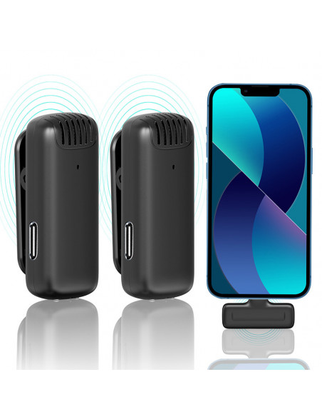 Make live streaming easier and more fun Pair the Ulanzi J12 Wireless Lavalier Microphone with Lightning plug to your mobile phone and you're good to go. Just clip the wireless microphone to your collar, connect the lightning receiver to your device and they connect automatically. APP and bluetooth are not needed. It is easy to store, lightweight and portable. Highlights Plug and play Wireless communication Supports simultaneous recording with two microphones Plug and play Simply clip the ULANZI wireless microphone to your collar, connect the Lightning receiver to your device and they automatically connect. APP and bluetooth are not required. Noise reduction With its built in professional grade intelligent noise cancelling module, it effectively filters noise and ensures natural sound quality. The Ulanzi J12 Wireless Lavalier Microphone uses omnidirectional condenser radio, and the 360° surround pickup makes the sound more three dimensional. Wireless communication The Ulanzi J12 Wireless Lavalier Microphone uses wireless communication between microphone and receiver, allowing for long distance recordings of up to 20 metres. It also supports simultaneous recording with two microphones. Charging case The storage box is also simultaneously the charging station. When the storage case is fully charged, the microphone can be fully charged up to 5 times and the microphone and receiver can continue to work for about 6 7 hours per charge. Full compatibility The Ulanzi J12 Wireless Lavalier Microphone with Lightning plug has a lightning port and fits most phones with lightning port. Note It cannot be used on some mobile phones. Try opening OTG, such as OPPO and VIVO. The general way to open OTG: search OTG in the phone settings to open., Product weight: 69 g Material: ABS Transmission distance: 20 m Sound delay: â¤25 ms Headphone monitoring: Support Transmitter battery capacity: 80 mAh Rechargeable housing battery capacity: 800 mAh Adapter: 5V/1A , 1 x Receiver 2 x Transmitter 1 z USB C Charging cable 1 x Storage cage