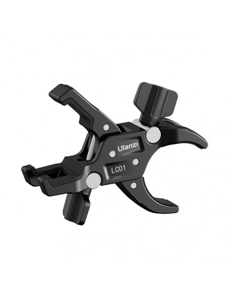 Super clamp for lighting tripod The Ulanzi LC01 Super Clamp is a versatile and sturdy aluminum clamp designed for securely attaching accessories such as cameras, lights and other equipment. Made of aluminum alloy, this clamp can support a weight of up to 5 kilograms, while weighing only 230 grams itself. Its compact design makes it ideal for shooting on location and provides a strong grip to hold accessories firmly in place. Highlights Broad compatibility Independent buttons High stability Compact and portable The LC01 clamp features dual clamp mounts and fits both square and round tubes. The clamp has adjustment knobs so you can effortlessly adjust the tightness., Materials: Aluminum alloy + Silicone Weight: 230 g Dimensions: 125 x 100 x 42 mm Load capacity. Maximum tube width (round): 48 mm Maximum tube size (square): 25 x 25 mm , 1 x Ulanzi LC01 Tube Clamp