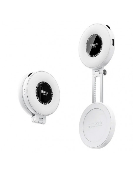 Soft light for natural beauty The Ulanzi LM19 Magsafe Fill Light White offers a soft and flattering light (CRI â¥95) that perfectly highlights your natural features, ideal for video shoots, livestreams and selfies. Highlights MagSafe compatibility & easy attachment Flattering soft light & adjustable colour temperature (2500K 8500K) Stepless dimming for perfect brightness Flexible Flip Design & Over 180° Flip Range Compact and portable Compact size for travelling With a folded size smaller than a powder box, this lamp easily fits in your pocket, allowing you to take it anywhere. Easy attachment with MagSafe The magnetic design allows the light to be quickly attached to metal surfaces. Compatible with MagSafe phones and cases, or use with the included magnetic ring sticker. Adjustable colour temperature (2500K 8500K) Choose from a wide range of colour temperatures, from warm to cool light, and adjust the brightness as desired (10 100%). So you always create the right mood for your shots. Flexible flip design The 180° flip hinge lets you adjust the lamp to any angle for perfect lighting. Type C charging Charging is easy via the Type C port, with the lamp fully charged in just 90 minutes. Can also be used as a phone stand In addition to lighting, the LM19 can also act as a phone stand, ideal for hands free video watching or video calls., Material: ABS, PC and aluminium alloy Folded Size: 60 x 70 x 21 mm Unfolded Size: 60 x 130 x 16 mm Weight: 62g CCT: 2500 8500K CRI: â¥95 Beam Angle: 120° Working Voltage: 3.7V Charging: Type C Battery Capacity: 400mAh Runtime: Brightness(Max)â¥1.5h, Brightness(Min)â¥8h Lumens: 8500K@100%, 0.5m 101Lux , 1 x Ulanzi LM19 Magsafe Fill Light White 1 x Magnetic Ring Sticker 1 x User guide
