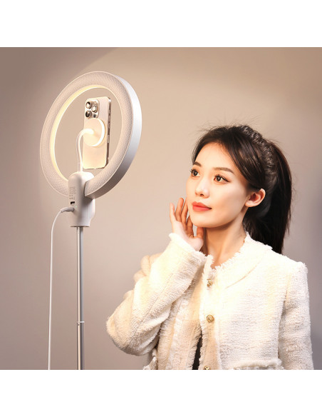 Ring video light The Ulanzi LT030 Magsafe LED Light EU plug with tripod and magnetic phone holder from Ulanzi measures 10â and casts a very even and almost shadowless light on your subject. The magnetic phone holder lets you switch seamlessly between landscape and portrait mode, ideal for smartphones with MagSafe or with MagSafe phone cases. Highlights 10â large ring lamp, soft and even lighting. Magnetic phone holder, quick change between landscape and portrait. 3000K 6000K adjustable colour temperature Wireless remote control (20m), adjust brightness and colour. Height adjustable (58.5cm 175cm) & tilt (±90°), free creative control. Adjustable colour temperature The ring light has settings for 3000, 4000 and 6000K to suit most ambient light situations. Colour and dimming adjustments can be made with the included remote control (20m range). Enjoy the ±90° tilt function for customised exposure angles, perfect for eye level or flat shots. Plus, stay powered thanks to the USB charging function, for uninterrupted livestreaming sessions. Height adjustable With a height range of 58.5 cm to 175 cm and 7 telescopic sections, you can let your creativity run wild and find the perfect setup for any shooting scenario. The tripod's tripod design ensures stability, while simple touch controls and wireless operation offer hassle free adjustments within a 20 metre range. Made from high quality materials such as plastic, aluminium alloy and stainless steel, the Ulanzi 10 inch Ring Light with tripod and magnetic phone holder is your tool for professional lighting and content creation., Model: LT030 Material: Plastic+Aluminium alloy+Stainless Steel Weight: 880g Dimensions (with the tripod extended): 42*58cm Height (with the tripod extended): 58 175cm Tripod Diameter: 42cm Power: â¥18W CRI: â¥96 CCT: 3000K 6000K Output: 5V/2A USB A Input: 12V/3A Wireless remote control: ï¼20m Ring light dimensions: 26.8 x 32.2 x 4.1 cm Telescopic tripod dimensions: 4 x 27 cm Height (with tripod unfolded): 28 144.5 cm Height (with the tripod unfolded): 27 143 cm Sections: 7 , 1 x Ulanzi LT030 Magsafe LED Light EU plug 1 x Telescopic tripod 1 x charger 1 x USB A nar USB C adapter 1 x User guide