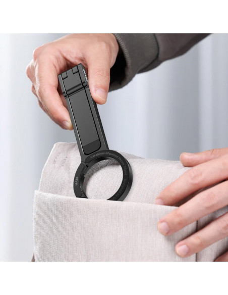 Phone tripod with carabiner The Ulanzi MA30 Carabiner Mobile Phone Tripod is specially designed for content creators on the go. It features a convenient carabiner design that allows you to easily attach it to your backpack, belt or gear, giving you hands free mobility during your adventures. Highlights Carabiner design Versatile usage Handheld & Stand Mode Carabiner Design Carabiner style design makes it easy to attach, leaving your hands free for hassle free travel. Always ready to capture, capture anywhere. Strong grip, easy to move Secure your phone in a snap and easily switch between horizontal mode with MagSafe and vertical stand with MagSafe. Handheld & Stand Mode The legs are adjustable so you can take creative shots from any angle. Use it in handheld mode or set it on the table in stand mode for even more possibilities. Versatility for more angles The flexible angle adjustment allows you to easily tilt so you can take great photos from different angles. Customize your setup Enjoy the flexibility of the double sided magnet. One side for your phone, the other side for your other accessories., Model: MA30 Double sided magnet Easy mounting Carabiner design Dimensions: 11.51 x 20.8 cm Folded dimensions: 2.59 x 1.14 x 15.8 cm. Weight: 100 g , 1 x Ulanzi MA30 Carabiner Mobile Phone Tripod