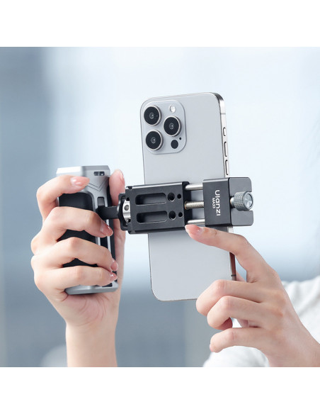 Arca Swiss phone mount The Ulanzi MA33 Arca Swiss Phone Mount is a versatile phone holder designed specifically for photographers and videographers looking for stability and flexibility while capturing images. Highlights Double cold shoe attachment Compatible with Uka and Arca quick release plates Adjustable width from 60 mm to 95 mm. Double cold shoe mount Attach lamps, microphones, tripods and more with the built in cold shoe and 1/4â thread. Switch devices easily The MA33 is compatible with quick release plates from Uka and Arca Swiss for seamless device transitions. Wide compatibility With its adjustable width, it fits most phones from 60 mm to 95 mm. Stable recording The MA33 has a durable aluminium construction with an anodised finish and non slip silicone pad for extra grip. Robust and protective TPE silicone pad prevents scratches, keeping your phone safe and protected., Material: Aluminium alloy Weight: 128.59 Dimensions: 94 x 32 x 38mm Clamp Width: 60 95mm