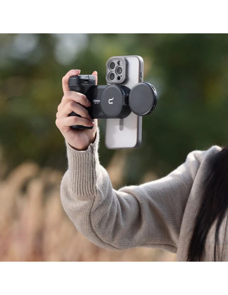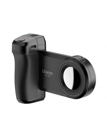 Balance and stability The Ulanzi MA35 MagSafe Bluetooth Smartphone Camera Shutter and Grip 1 is compatible with both iOS and Android smartphones. With a magnetic or phone clamp connection, it effortlessly transforms your phone into a professional level camera. The ergonomic grip provides a comfortable texture for handheld shots, while the remote camera shutter provides convenient remote shots. Highligths Magnetic or phone clamp connection Vertical and horizontal mode Bluetooth shutter Phone clamp width of 50 95mm Magnetic or phone clamp connection MA35 Grip's magnetic accessories feature a secure magnetic connection that can be easily linked together, allowing you to customise your workflow on the go. This seamless connection enhances your experience and provides a versatile platform for your MagSafe compatible devices. Phone clip fits devices from 50 to 95 mm wide. Vertical and horizontal mode The phone clamp offers ease of use, allowing you to quickly switch between vertical and horizontal shooting. Bluetooth shutter Take photos and videos with your index finger just as if you were holding a camera with the wireless shutter release button (wireless operation within 15m). Your phone's grip, your way The cold shoe view, 1/4â screw and magnetic mount are made for your accessories, keeping the creativity flowing. Comfortable grip Ergonomic non slip grip fits around your hand and stabilises your phone while shootin, Material: ABS, Silicone, PCBA & Acrylic Dimensions: 127 x 96 x 45 mm Weight: 130 g Phone clamp Width: 50 95mm