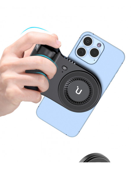 Magnetic wireless power grip With Ulanzi MA45 Magnetic Wireless Power Grip, you can easily turn your smartphone into a full fledged camera, complete with extra battery life and improved grip, which is ideal for content creators, vloggers and mobile photographers looking for a professional and flexible solution. Highlights Magnetic mount With 1/4â thread for attaching tripods and extensions Ergonomic design Snap and capture Fix your phone in an instant and easily switch between horizontal and vertical mode with the magnetic design. Comfort in one hand A Bluetooth wireless shutter lets you take photos with a single click. Power that moves with you More than just a phone grip, it also acts as a power bank, keeping your creativity flowing. From desk to height, all in one stand Discover more possibilities with the 1/4â thread for attaching tripods and extensions., Materials: ABS+Silicone+PC +Aluminum Alloy Remote Control: 10m Input/Output Voltage: ~~ 5/9/12V 18W(Max) Input/Output Connector: Type C Battery Capacity/Voltage: ~~ 5000mAh/3.7V Wireless Charging Efficiency: 75%(Max) Wireless Charging Power: ~~ 5W/7.5W/10W Dimensions: 120 x 87 x 50 mm Weight: 216 g , 1 x Magnetic Wireless Power Grip 1 x Type C Charging Cable 1 x User guide