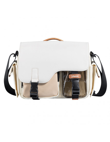 One bag three styles The Ulanzi MS12 Messenger Bag (White) is the ideal combination of style, functionality and carrying comfort for modern content creators and photographers. This stylish shoulder bag is designed to safely carry your camera, lenses and accessories while looking fashionable. With a smart design, high quality materials and practical layout, it offers the perfect balance of aesthetics and functionality. Highlight Adjustable shoulder straps (95~158cm) for versatile carrying options. Soft high quality leather with water repellent material Built in removable dividers for organised storage, Large capacity of 5.6 litres One bag three styles Padded shoulder strap can be adjusted between 95cm and 158cm to accommodate all heights and offer multiple carrying options. Stay dry with sturdy fabric Made of high quality materials, this bag is durable and splash proof. The soft yet sturdy fabric retains its shape over time. Quick one handed access The simple one buckle design allows you to open the flap with one hand, so you can access your stuff in an instant. The flap can also be tucked into an inner pocket for even quicker access to your gear. Removable dividers allow you to customise the storage space for different cameras. Inside organised ready outside Multiple compartments keep your small accessories neatly organised and within easy reach., Weight: 929 g Dimensions: 34.5 x 14 x 24 cm Capacity: 5.6L Load capacity: 5 kg Materials: Polyester Lining: Velvet Divider: EVA+fleece+ Velcro , 1 x Ulanzi MS12 Messenger Bag(White) 2 x Divider
