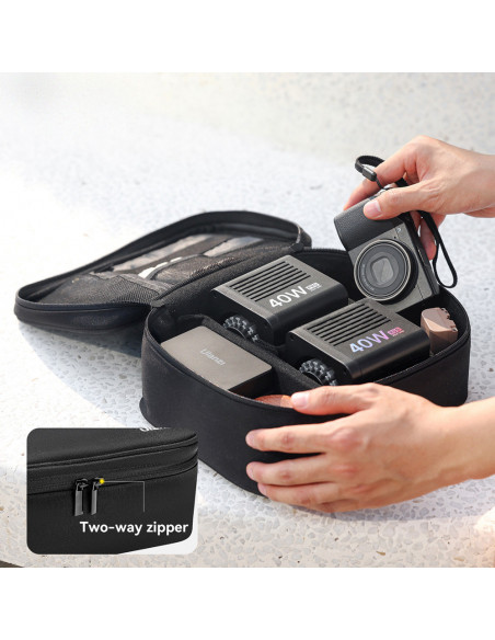 Big on space, small on size The Ulanzi OM 02 Bag is designed to store your accessories, such as battery, power bank, SD card, portable light and cables. Highlights Ideal for storing your accessories Easy access with double zip Lightweight and compact All round protection Made of splash proof and scratch resistant 600D oxford fabric outer layer with soft velvet inside, thick shock absorbing pearl cotton to protect your accessories. Easy access with double zip The bag is designed with a 2 zip closure that allows you to easily open or close the bag. Convenient to use. Lightweight and compact Weighing only about 257 grams, this camera bag with a thickened padding strap handle is easy to carry. , Model: OM 02 Material: High quality polyester fibre fabric. Size: 245 x 190 x100 mm. Weight: 257 kg. , 1 x Ulanzi OM 02 Bag 2 x Divider long 1 x Divider short