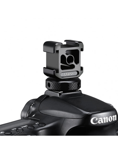 Cold shoe mount The universal Ulanzi PT 12 Triple Cold Shoe Mount is perfect for DSLR cameras such as Canon, Sony, Nikon, Fujifilm and more. With three cold shoe mounts, this accessory can be used as a DSLR monitor extension for microphones, LED lights and other equipment. The 1/4 screw offers additional compatibility for extending the magic arm. Highlights Suitable for microphones, LED lights and so on Features three cold shoe mounts Sturdy and durable Made of high quality aluminium alloy, this cold shoe is durable and lightweight, so it doesn't add much extra weight to your camera equipment.
