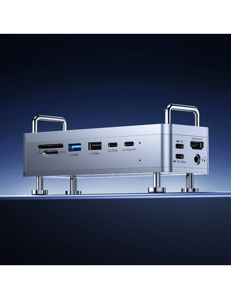 Compact storage solution with high speed The Ulanzi QT03 Docking Station with SSD Enclosure provides an efficient solution for professionals in need of fast and reliable storage. This docking station features expandable M.2 NVMe SSD space of up to 8 TB, packaged in a compact and sleek design. With support for USB4 (40 Gbps) and high quality ASM2464PD and VL822 chips, the QT03 delivers stable performance and lightning fast data transfers. Ideal for those working with large files and requiring maximum productivity. Highlights Compact all in one storage Expandable M.2 NVMe SSD storage up to 8 TB 8 TB of M.2 NVMe SSD storage with USB4 (40 Gbps) for ultra fast transfers 2 in 1 minimalist setup Streamline your workspace with a sleek combination of hard disk storage and expansion, all in one compact device. Boost your creativity with 8TB The QT03 supports M.2 NVMe SSDs and offers up to 8TB of storage to boost your productivity. Dual chip design, fast transfer Equipped with the ASM2464PD and VL822 07T chip, the QT03 ensures stable, fast performance with seamless data transfer. Enjoy 40 Gbps with USB4 The QT03 supports USB4 for up to 40 Gbps, so you can effortlessly transfer huge files as fast as you can make them. * Actual speeds may vary depending on computer performance, cables and storage capacity. Unlock 10 ports at once Compact but powerful, it offers multi port expansion to connect all your devices in one streamlined setup. * Actual speeds may vary depending on computer performance, cables and storage capacity. USB Ax2+USB Cx2 Seamlessly connect your mouse, keyboard, USB stick, external hard drive and more. SD/TF 4.0 simultaneous read and write Read both cards simultaneously with speeds up to 312 MB/s and support up to 2 TB, perfect for importing and transferring files. HDMI 4K60HZ Enjoy smooth high definition images and multitasking on two screens to boost your work efficiency. 3.5 MM audio jacks Connect a microphone to your laptop and speakers for better audio when livestreaming or gaming. PD charging Supports PD 3.0 fast charging with 100 W input (recommended) and 85 W output for laptops and devices. Stay cool and connected The adjustable fan reaches up to 8800 RPM for quiet, efficient cooling and stable data transfer. The aluminium base plate ensures quick heat dissipation, the vented mesh design for airflow and it features quiet operation at 30 cm distance. Perfect for mac mini Fits seamlessly into the Ulanzi Mac Mini aluminium enclosure. * The Mac mini aluminium enclosure is sold separately. Minor colour differences may occur due to production batches. Plug and Play Compatible with MacOS, Windows, Linux, Android and HarmonyOS, works seamlessly on computers, tablets and smartphones. * No driver required for MacOs, driver installation required for windows/linux(included). For laptops/phones/tablets, PD charging is recommended during use., Materials: CNC aluminium alloy, silicone, EVA, stainless steel Dimensions: 143 x 50 x 61 mm Weight: 721 g , 1 x Docking station with SSD enclosure 2 x USB C to USB C 40 Gbps cable 1 x Wrench 2 x SSD mounting screws 2 x Thermal pads 1 x User guide