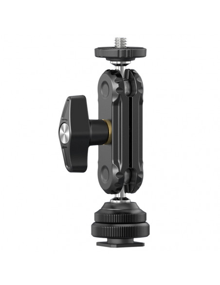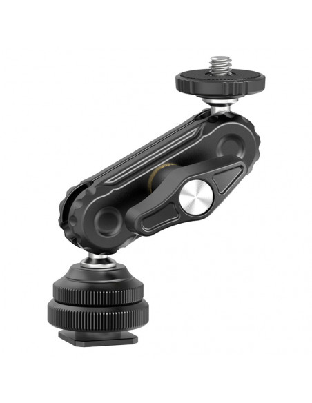 The perfect tool The Ulanzi R098 Magic Arm with Cold Shoe Male Thread is the perfect tool for any professional or amateur videographer and photographer looking for flexibility and ease of use in their equipment. Highlights Versatile in its use 1/4â screw on top and bottom 360° adjustable Attachment points The top is equipped with a 1/4â screw, ideal for extending light equipment such as monitors, fill in lights, microphones and more. The bottom has an integrated base with a cold shoe interface and a 1/4â screw port, providing greater versatility and easier installation. 360° adjustable The two ball joints can adjust and lock the angle 360° with one button, and the double non slip design provides more stable support., Dimensions: 100 x 59 x 42 mm Weight: 85 g Material: aluminium + ABS Load capacity: up to 1.5 kg