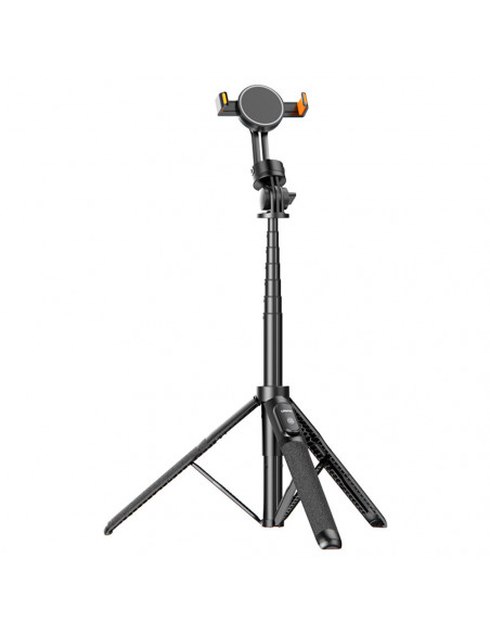 Capturing moments with ease With a compact and lightweight design, Ulanzi SK 05 MagSafe Universal Phone Tripod Kit is perfect for content creators to vlog, live stream or take selfies with a mobile. With a 10 metre remote control range, 360° phone clamp rotation, extendable up to 1.6m, 27mm centre column made of aluminium alloy, you are equipped with all the conveniences. Highlights Perfect for vlogging or livestreaming MagSafe magnetic attachment Shoot at different angles Convenient storage, easy to carry Weighing just 416g, the SK 05 MagSafe Universal Phone Tripod Kit can be held with one hand and is easy to carry. The textured handle and bottom have eem silicone pad and provide a comfortable grip. MagSafe magnetic attachment The SK 05 MagSafe Universal Phone Tripod Kit has a magnetic attachment to easily install your phone, it stays in place and won't fall off easily. Note: Only compatible with smartphones case with MagSafe magnetic attachment, or use the magnetisation plate. Stretchable Phone Clip This phone clip has a stretchy design that opens with a single click. The non slip silicone cushion provides protection for your phone. Take pictures at different angles 360° swivel, 90° cushioning positioning with spherical beads and 180° front and back adjustment to meet different angle requirements. Equipped with a 1/4" screw adapter, convenient to switch between mobile phones or other devices up to 1.7 kg., Weight: 416 g Min Height: 420 mm Max Height: 1600 mm Storage size: 435 mm Material: Aluminium alloy + ABS + PC + Stainless steel Bluetooth remote control: CR1632/120mAh (battery capacity) Mobile phone Clip size: 120.3 x 72 x 57.5 mm Retractable distance (mobile phone clip): 60 99 mm Applicable models: 5 7 inch phones Magnetic force: 1.7 kg , 1 x Ulanzi SK 05 MagSafe Universal Phone Tripod Kit