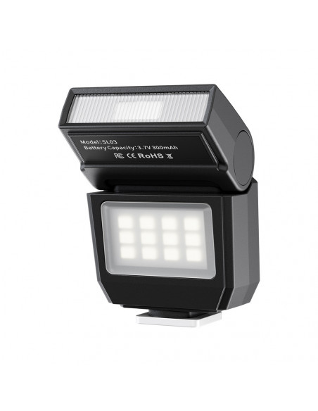 Compact powerhouse for on the go The Ulanzi SL03 Spark Lite Camera Flash Light (Black) is a flash you can take with you anywhere. Weighing only 43 grams, it fits easily in your pocket. It is ideal for photographers who want to travel light but don't want to compromise on lighting. Highlights Pocket sized and portable 90° adjustable flash angle, including direct and indirect flash 3 exposure modes Fast recharge time and 500 flashes Universal hot shoe compatibility Flexible flash at any angle Thanks to the 90° adjustable head, you can easily switch between direct and indirect (bounce) flash. Perfect for creative lighting, especially indoors with ceilings or walls 1 to 2 metres away. Always the right light Choose from three modes: flash, continuous light or a combination of both. In flash mode, the constant light also acts as a focus assist, so you can focus quickly even in the dark. Adjustable flash intensity and faster repetition for seamless continuous shooting, so you can capture every moment. Fast charging, long use A full Type C charge takes only an hour and provides up to 500 flashes at full power. The fast recharge time (0.8 2.5 seconds) ensures you never miss a moment. Compatible with almost everything The universal single contact hot shoe makes the SL03 suitable for most digital cameras, including models from Sony, Canon and Nikon., Dimensions: 68.6 x 43.2 x 23 mm Weight: 43 g Flash mode CCT: 6500 K ± 8% CRI: 97 GN: 8 (ISO 100) Recharge time: 1/8 power: continuous flash 1/4 power: 0.8 s 1/2 power: 1.5 s 1/1 power: 2.5 s Number of flashes: 500 flashes at 1/1 power Charging port: Type C Charging time: approx. 1 hour (5 V/1 A) Battery: 300 mAh 3.7 V Constant mode CCT: 5600 K ± 200 K CRI: â97 Power: 1 W Illuminance: â130lux@0.5m, 5600 K , 1 x Ulanzi SL03 Spark Lite Camera Flash Light 1 x A to C Charging Cable 1 x User guide