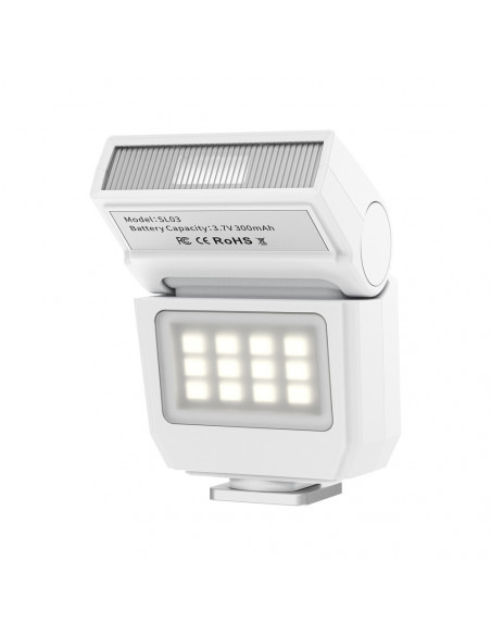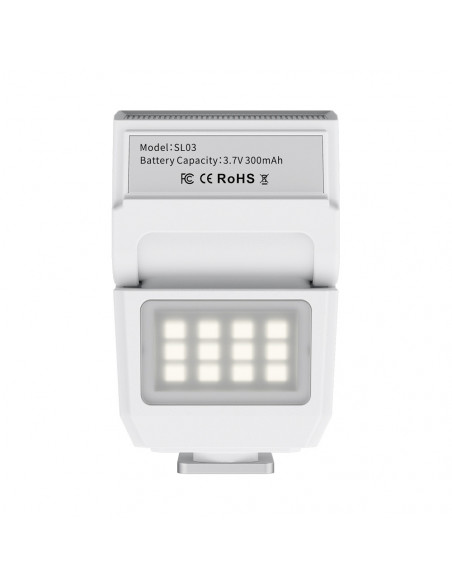 Compact powerhouse for on the go The Ulanzi SL03 Spark Lite Camera Flash Light(White) is a flash you can take with you anywhere. Weighing only 43 grams, it fits easily in your pocket. It is ideal for photographers who want to travel light but don't want to compromise on lighting. Highlights Pocket sized and portable 90° adjustable flash angle, including direct and indirect flash 3 exposure modes Fast recharge time and 500 flashes Universal hot shoe compatibility Flexible flash at any angle Thanks to the 90° adjustable head, you can easily switch between direct and indirect (bounce) flash. Perfect for creative lighting, especially indoors with ceilings or walls 1 to 2 metres away. Always the right light Choose from three modes: flash, continuous light or a combination of both. In flash mode, the constant light also acts as a focus assist, so you can focus quickly even in the dark. Adjustable flash intensity and faster repetition for seamless continuous shooting, so you can capture every moment. Fast charging, long use A full Type C charge takes only an hour and provides up to 500 flashes at full power. The fast recharge time (0.8 2.5 seconds) ensures you never miss a moment. Compatible with almost everything The universal single contact hot shoe makes the SL03 suitable for most digital cameras, including models from Sony, Canon and Nikon. , Dimensions: 68.6 x 43.2 x 23 mm Weight: 43 g Flash mode CCT: 6500 K ± 8% CRI: 97 GN: 8 (ISO 100) Recharge time: 1/8 power: continuous flash 1/4 power: 0.8 s 1/2 power: 1.5 s 1/1 power: 2.5 s Number of flashes: 500 flashes at 1/1 power Charging port: Type C Charging time: approx. 1 hour (5 V/1 A) Battery: 300 mAh 3.7 V Constant mode CCT: 5600 K ± 200 K CRI: â97 Power: 1 W Illuminance: â130lux@0.5m, 5600 K , 1 x Ulanzi SL03 Spark Lite Camera Flash Light 1 x A to C Charging Cable 1 x User guide