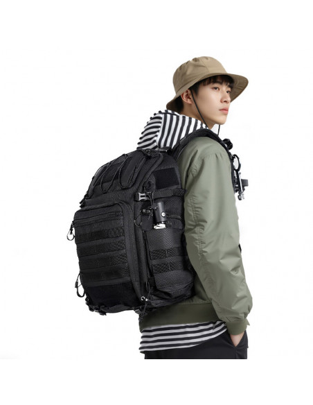 Carry more, feel less Weighing just 1.31 kg and with a capacity of 28 litres, the Ulanzi Tactical Camera Backpack 28L ensures you can travel light and in comfort. Highlights Sturdy and comfortable Endless possibilities for personalisation 28 litre capacity Designed for your comfort The built in lightweight aluminium frame provides sturdy support, keeping the backpack comfortable and well shaped no matter how you carry it. MOLLE system for personalisation The MOLLE straps on the front and sides, together with a Velcro panel and an external carrying strap, offer endless possibilities for personalising your backpack. U shaped opening for easy access The 180° U shaped opening provides full access, allowing you to make the most of the bag's 28 litre capacity and pack effortlessly. Secure your belongings, no matter how you move Adjustable Velcro dividers keep your devices safe and organised and prevent them from sliding around when you're on the move. Always ready You can grab your gear instantly thanks to the side pocket, designed for quick and effortless access, so you never miss a shot. All round attachment points With attachment points on the bottom, you can secure tripods, mats, tents and more, grab your gear and go., Model: BC007 Backpack capacity: 28 litres Camera cube capacity: 13 litres Main material: polyester Lining: polyester Divider: polyester + EVA Dimensions: 31 x 19 x 48 cm Weight: 1.3 kg , 1 x Ulanzi Tactical Camera Backpack 28L 1 x Detachable hip belt 1 x Camera cube