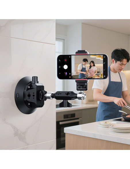 Positioning without restrictions The Ulanzi TB15 Magic Arm Pro is designed for creators who don't want any wobbling or messing around. It is made of sturdy aluminium, equipped with double locking points and a handy anti slip design. Thanks to the 1/4â and 3/8â screw threads, you can mount it on almost anything in your kit. Highlights Equipped with double locking points 1/4â & 3/8â mounting points Combine with the Ulanzi TB15 Suction Cup Mount 360° adjustable for the perfect shot Whether you need to position a monitor, microphone or camera, the Ulanzi TB15 Magic Arm Pro rotates freely horizontally and vertically. Thanks to the integrated locking button, everything stays exactly as you set it. Double thread for easy mounting The magic arm has 1/4â and 3/8â threads at both ends. This makes it ready for use with almost any accessory or device you want to attach to it. , Multiple 1/4â and 3/8â mounting holes Equipped with double locking points 360° adjustable Made of aluminium