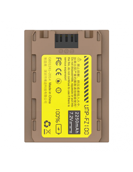 Always powered The Ulanzi UNP FZ100 Full Decode Battery with Type c Charge Port features high compatibility, worry free durability and 3 modes for easy power. Highlights Real capacity, worry free durability 3 Modes for worry free power supply 100% security guarantee Real capacity, worry free durability Similar to your original battery, these batteries can be charged either in camera or with the 2.1a USB dual charger. Complete with an NP FZ100 battery with 2250 mAh storage capacity, a voltage of 7.4V, and a new fully decoded chip that works like the original. 3 Modes for worry free power. The battery has a Type C interface, eliminating the need to carry a charging station and making it easy to charge on the go. 100% safety guarantee The battery features multiple circuit protections (against overcharging, short circuits, high temperature, and surges), and high quality, fire resistant construction. , Voltage: 7.4 V Capacity: 2250 mAh Battery cell composition: Lithium ion Weight: 80 g Dimensions (L x W x H): 51.8 x 38.7 x 22.7 mm Replaces OEM P/N: Sony NP FZ100 , NP FZ100 battery for Sony Alpha 7 IV, Alpha 7 III, Alpha 7R IV, Alpha 7R III, Alpha 7C, Alpha 7S III, Alpha 6600, Alpha 9 II, Alpha 9, Alpha 9 ILCE 9 , 1 x Ulanzi UNP FZ100 Full Decode Battery with Type c Charge Port