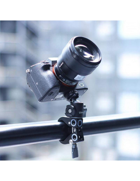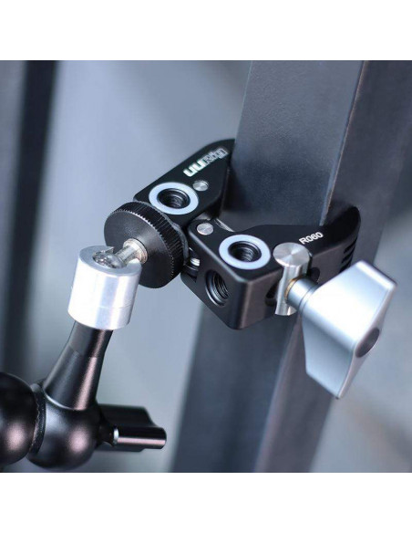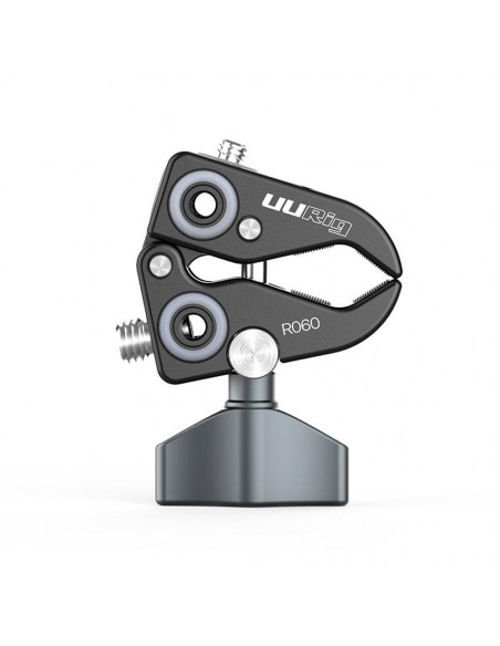 Multifunctional clamp The multi functional Ulanzi UURig R060 Super Clamp Crab Rod Clip offers options for different scenes and angles, making it widely applicable. With an opening diameter of 14 mm to 43 mm, this clamp clamps tighter and offers a firm grip. Highlights Multifunctional clip Widely applicable Comes with various screws and an ARRI fixing hole The super clamp comes with 6 (1/4 screws), 2 (3/8 screws) and an ARRI mounting hole, meeting various expansion needs. The slip resistant silicone plate ensures strong and stable attachment, making it a reliable choice for all your creative projects., Comes with 6 (1/4 screws), 2 (3/8 screws) and ARRI fixing hole Clamp opening 14 mm to 43 mm Non slip silicone plate
